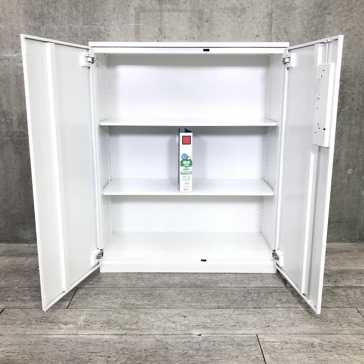 コクヨ製 エディアシリーズ ホワイト シリンダー 施錠 収納物がひとめで分かる両開き戸タイプ! ローキャビネット 両開き書庫!!外部倉庫在庫