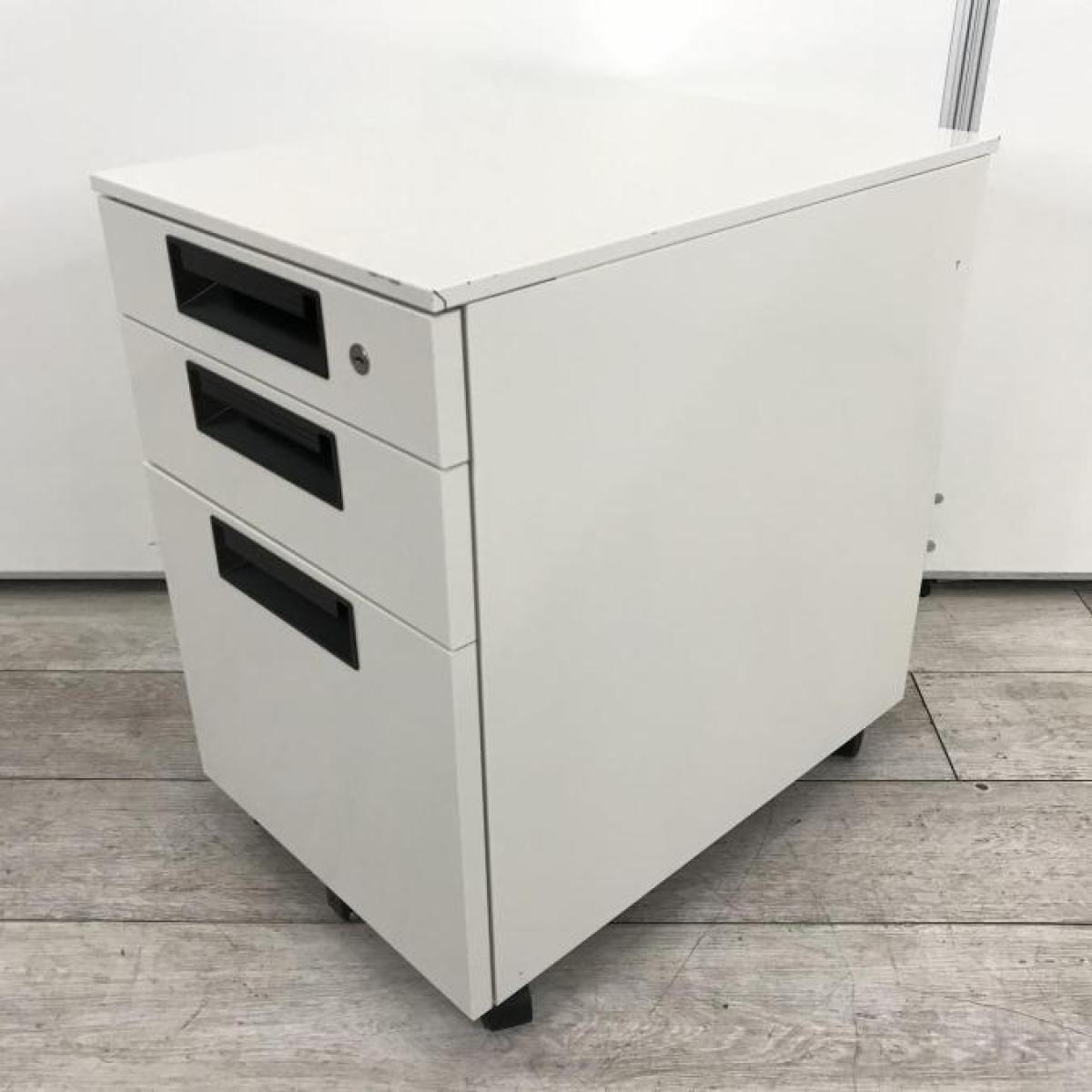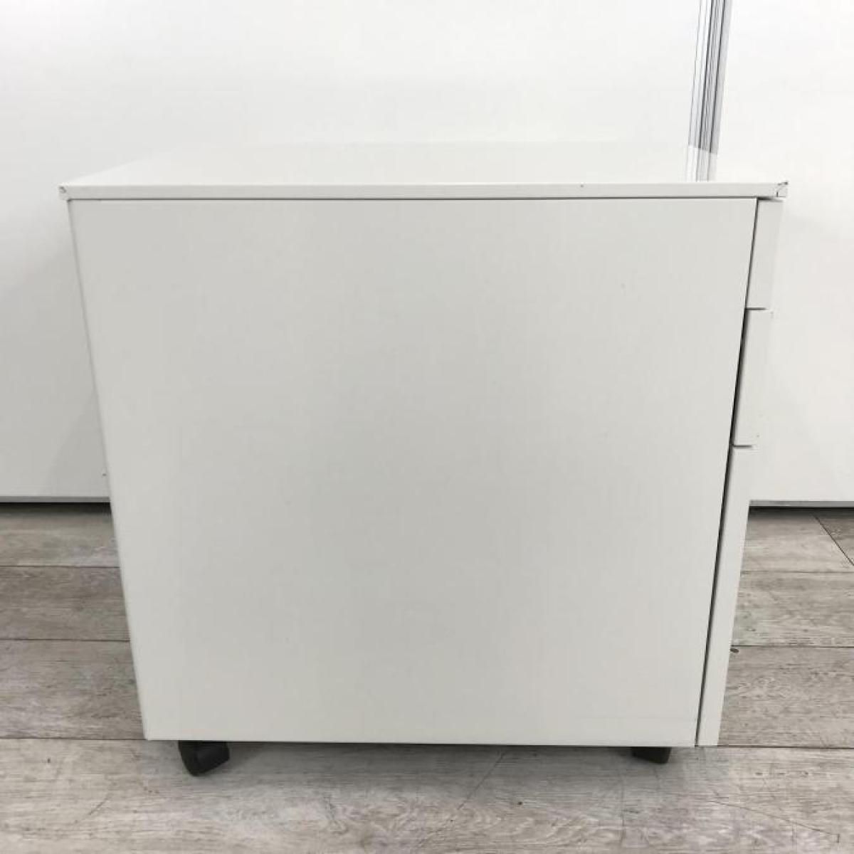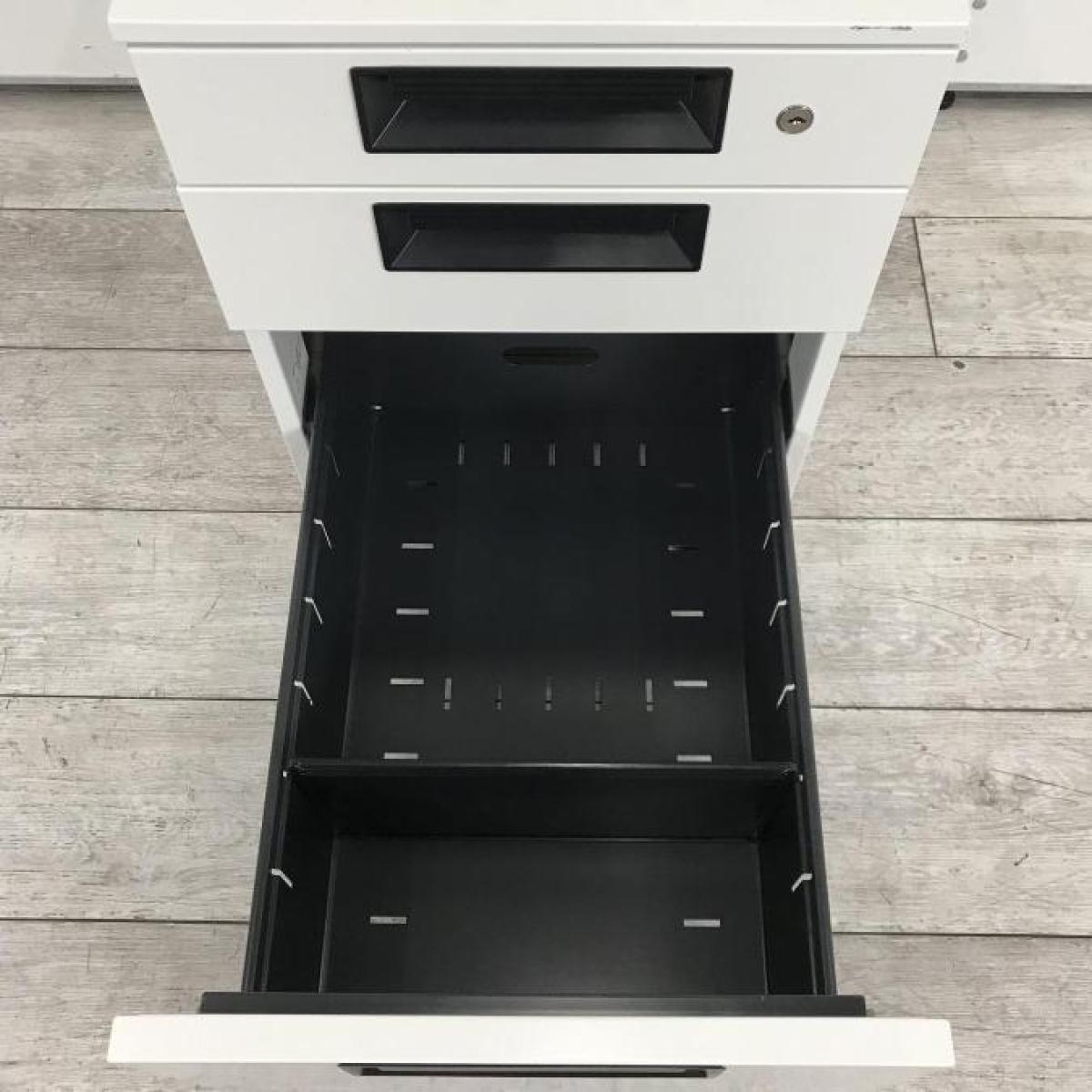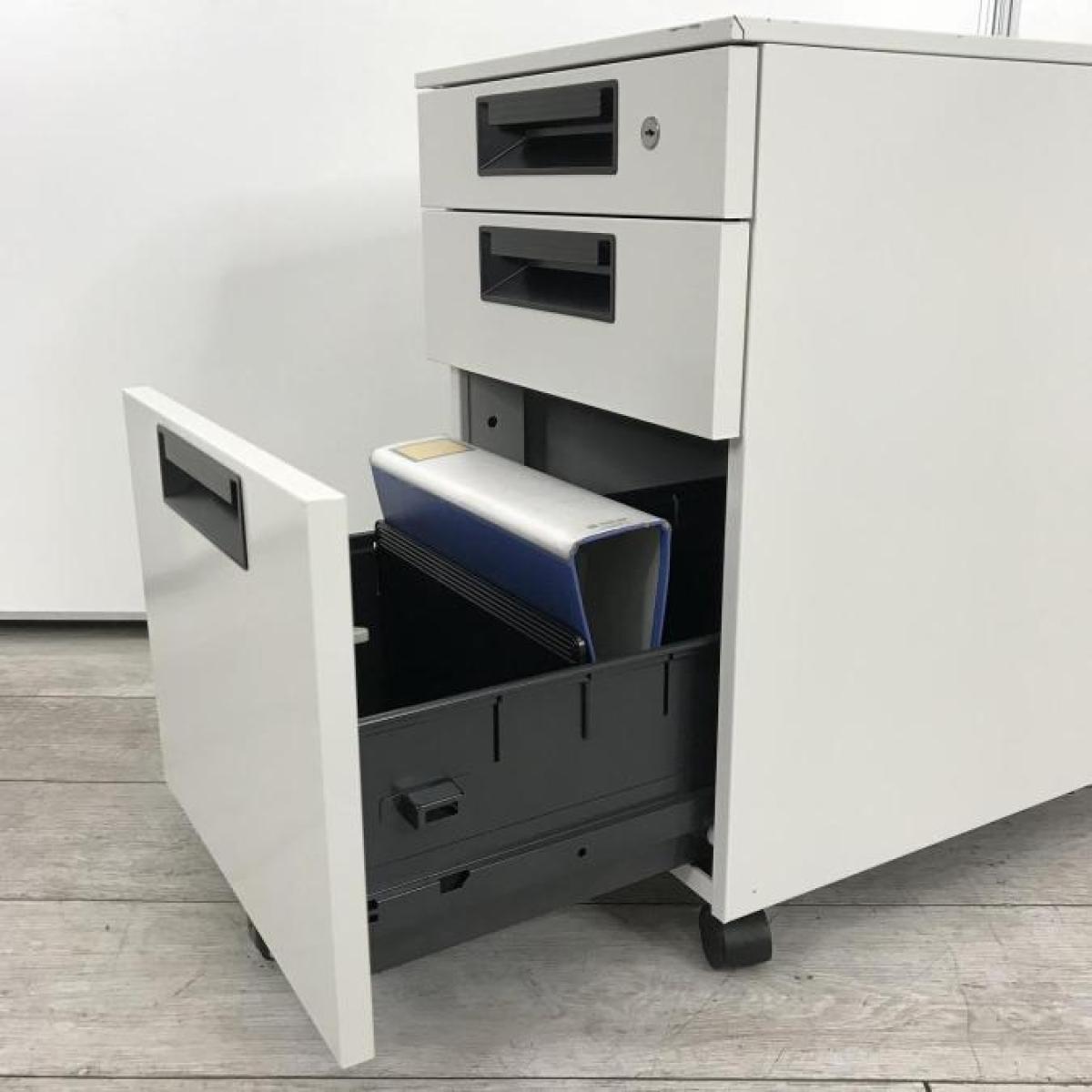 【定価約9万円】【書類整理に便利!平机の相棒!】■プラス(PLUS)製 フラットラインシリーズ デスクインワゴン 3段ワゴン H605mm ■ホワイト ■シリンダー錠- 仙台店