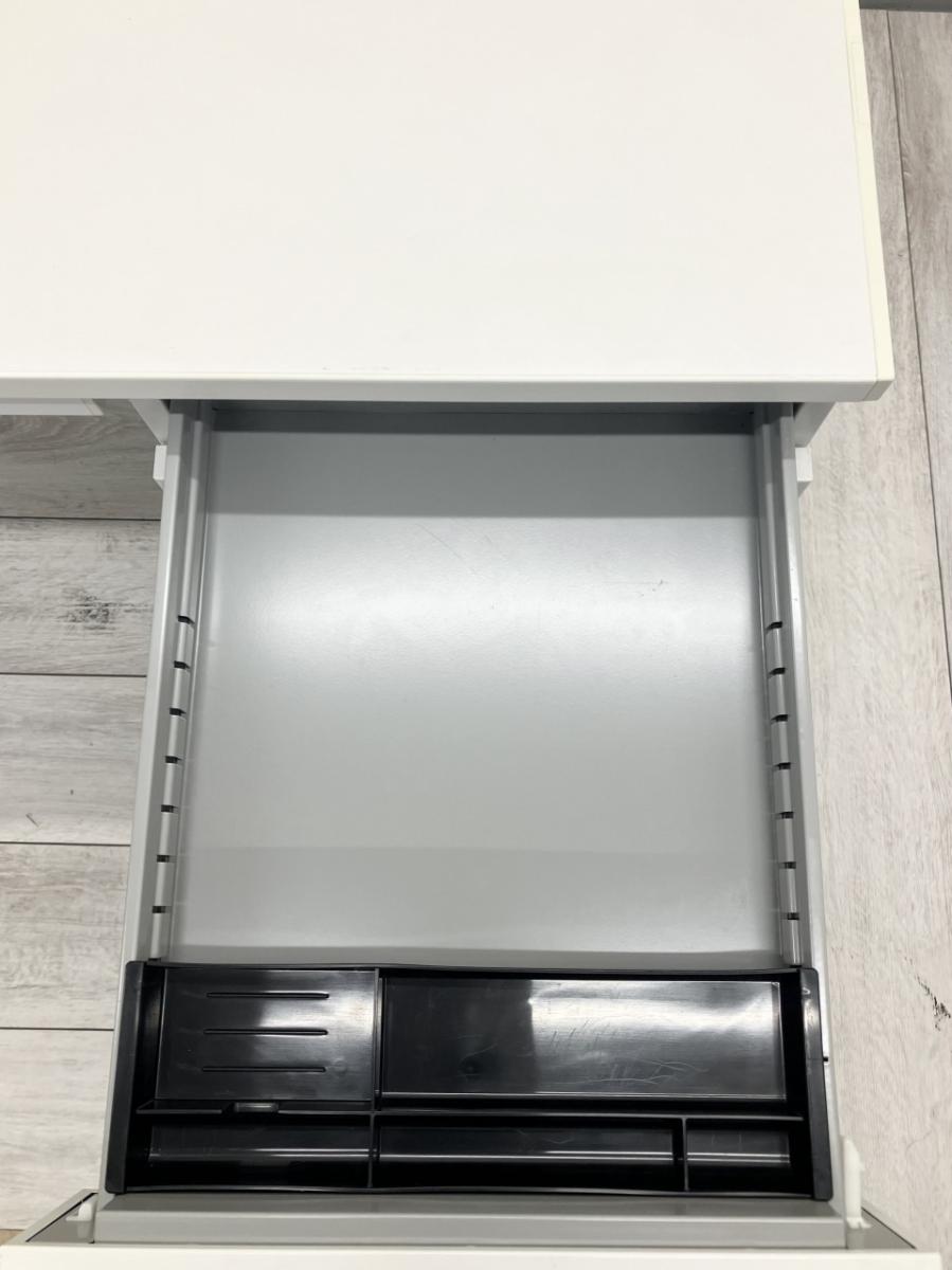 【引き出しつきデスクとワゴンの特別セット!】■内田洋行 スカエナシリーズ デスク+ワゴンセット ■横幅1200㎜×奥行き700 ■引き出しなし ■ホワイト 【中古でお得に買うなら品質の良いデスクを!】 ※ワゴンは在庫状況によって変動致します。