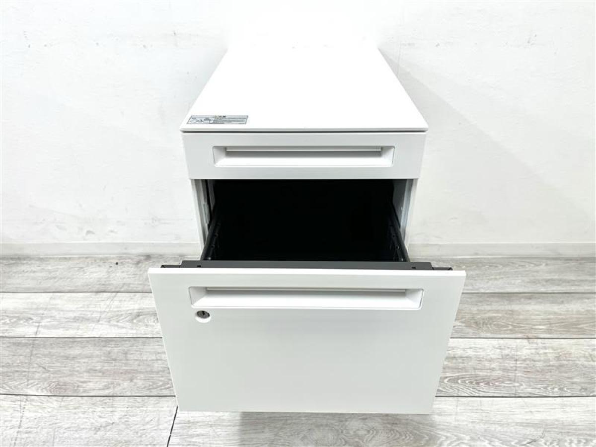 ★【取っ手日焼け】オカムラ製 アドバンス ホワイト フリアド用 W390xD575xH650サイズ シリンダー フリアドデスクや平机の収納力アップに最適! 3段ワゴン!!