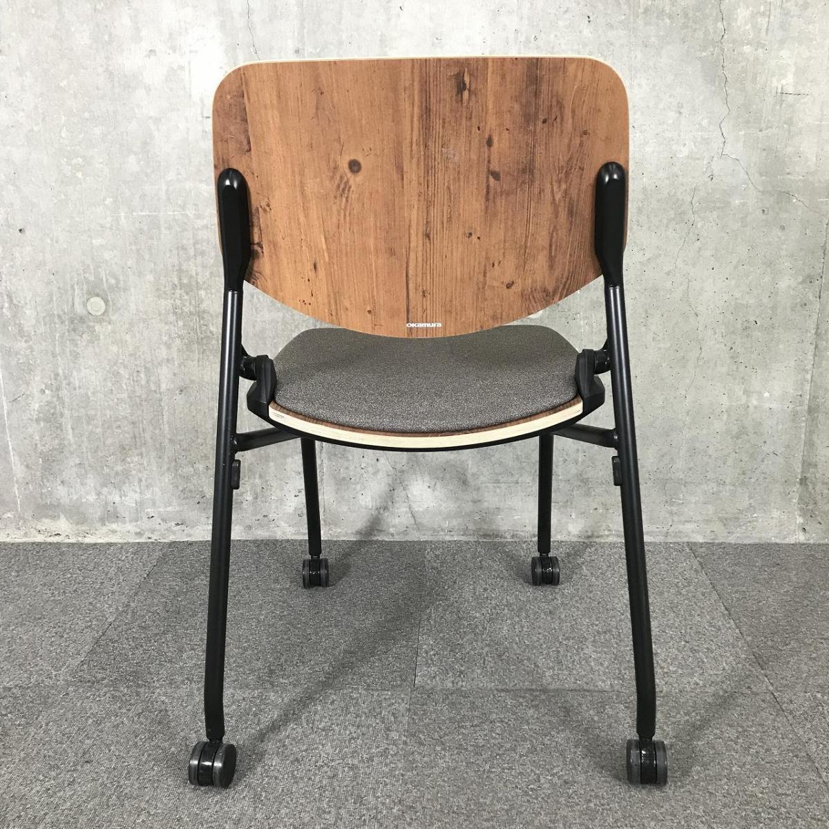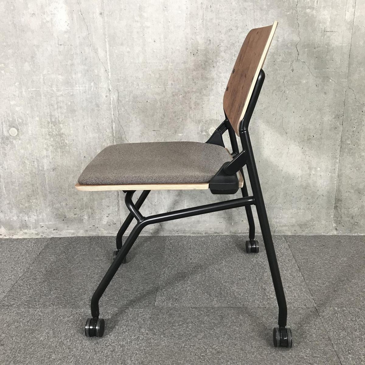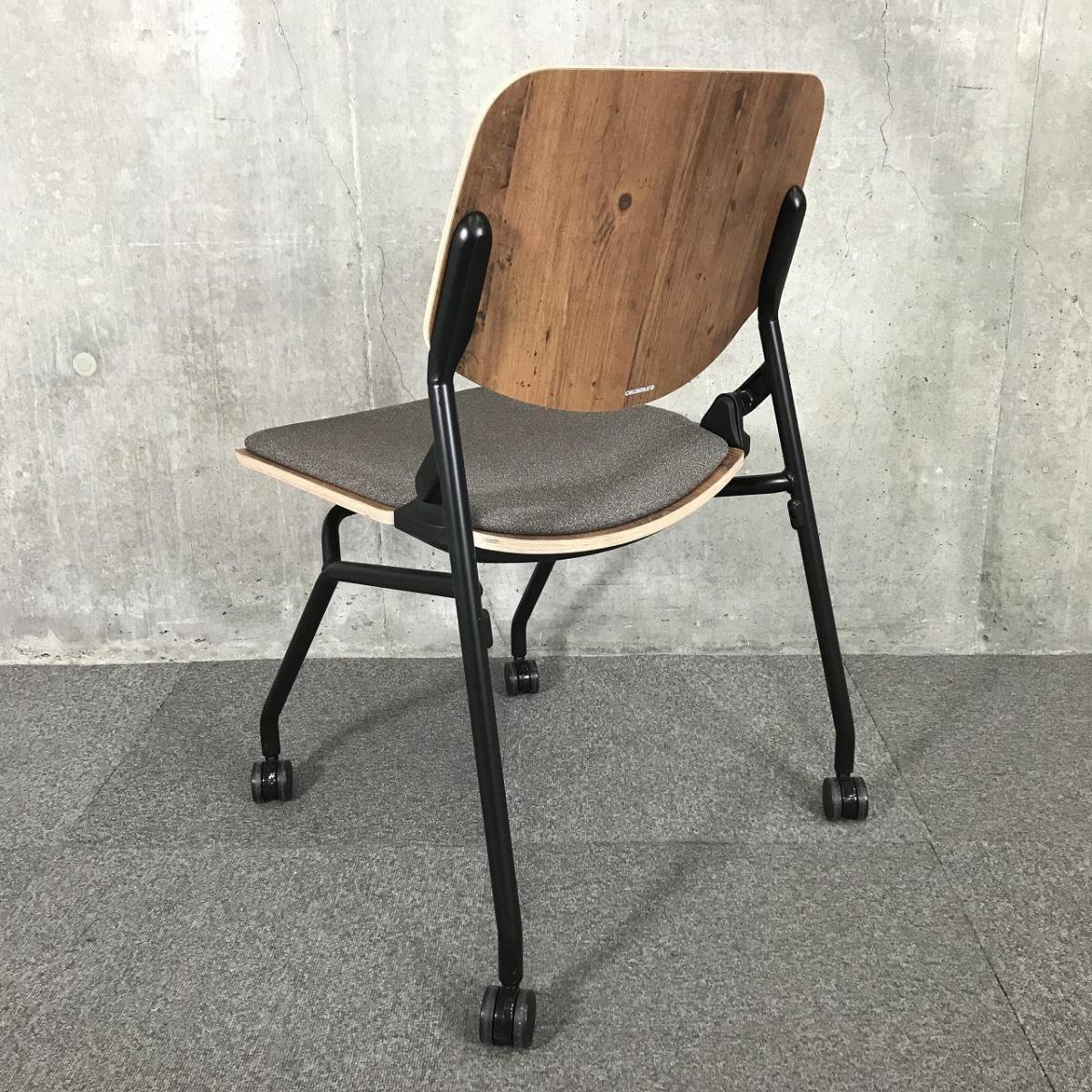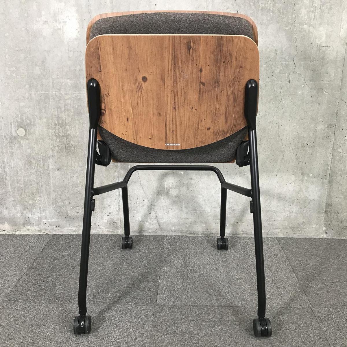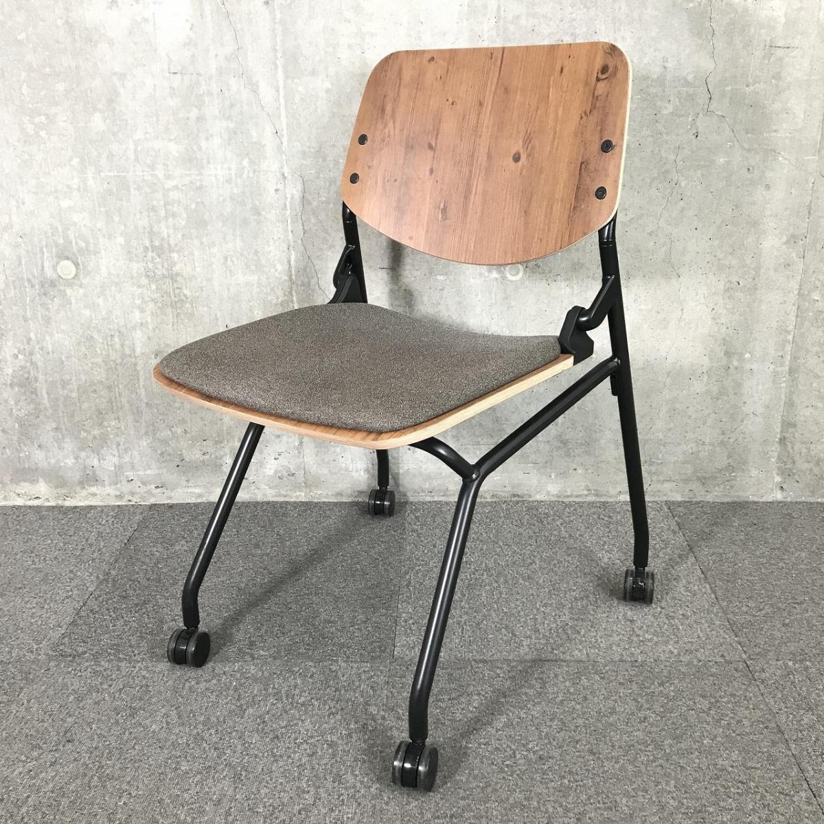 【希少なナチュラル調のネスティングチェア!】■オカムラ(Okamura) ライブスネスティングチェア (Lives Nesting Chair) ミーティングチェア ■木目ナチュラル × 座面:グレー ■キャスター付き- 新大阪店