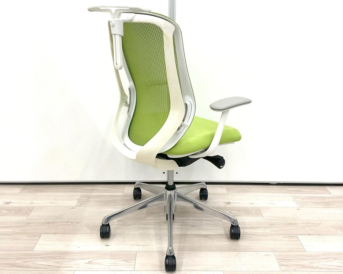 【前傾チルト機能付き】【オカムラ製品で最も人気を集める高機能メッシュチェア!】■オカムラ(okamura)製 シルフィ(Sylphy)チェア 肘付き ハイバック 背面メッシュ ■固定肘・ハンガー付き ※フレーム日焼け有 ■ライムグリーン×ホワイトシェル【弊社使用欄:A01039003 K】サーキュラーバリューCO2削減量の算出について