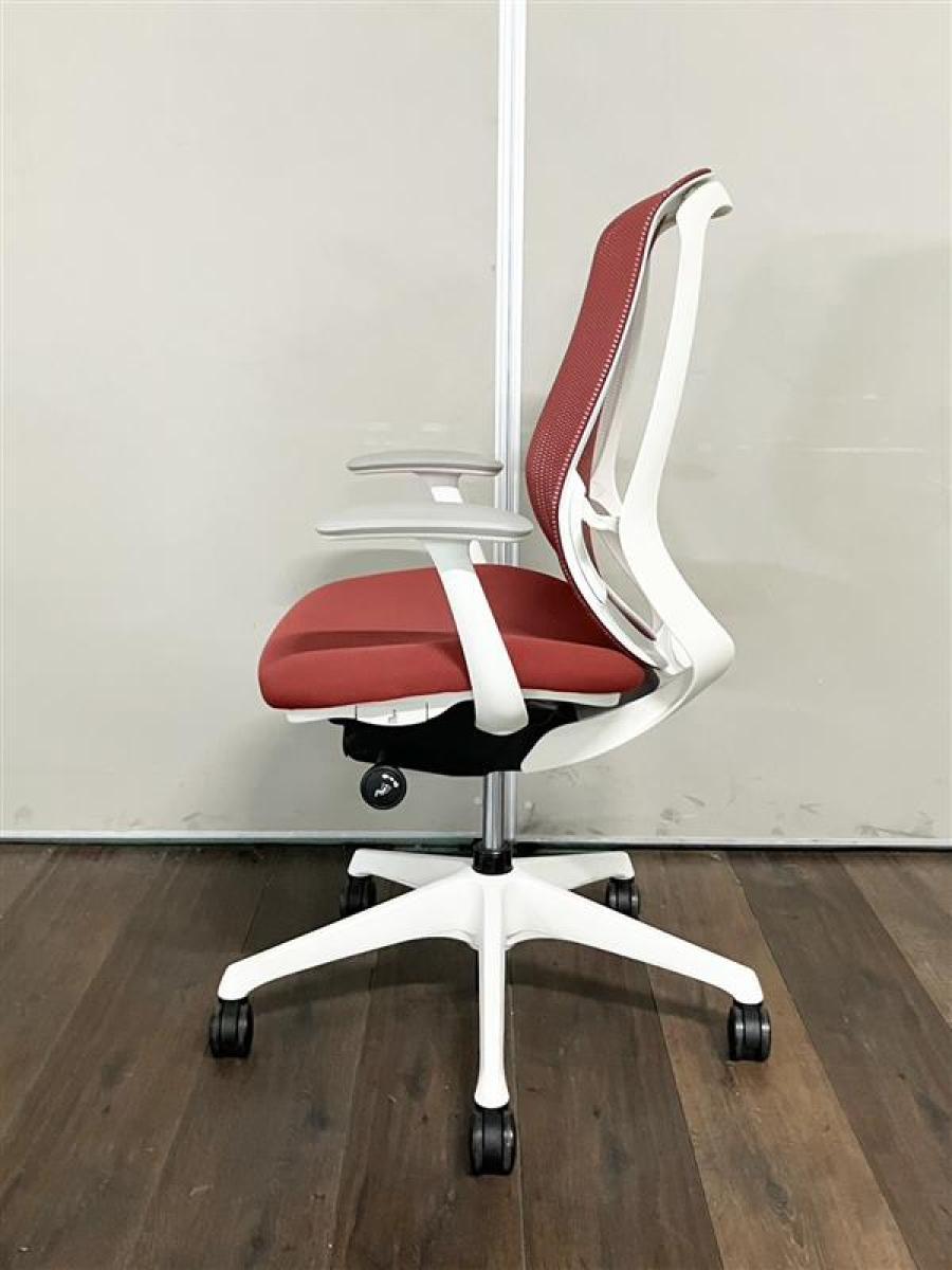 【大手町・神田サテライトCP】【三次元曲面が快適にフィット!!前傾チルト機能付の大人気メッシュチェア!】■オカムラ(okamura)製 シルフィー(Sylphy) 肘付き ハイバック ■メッシュバック ■可動肘 レッド/ フレーム色:ホワイト