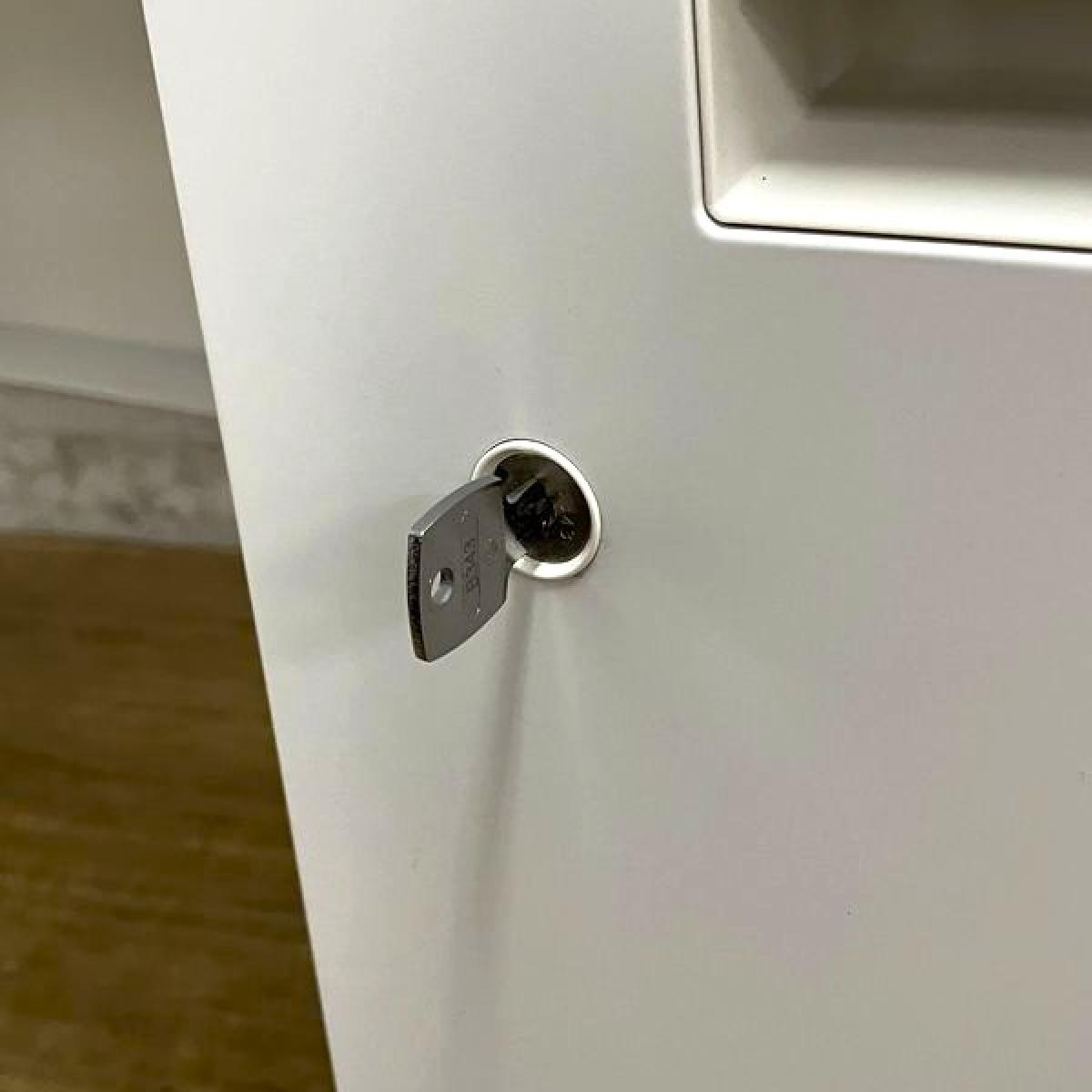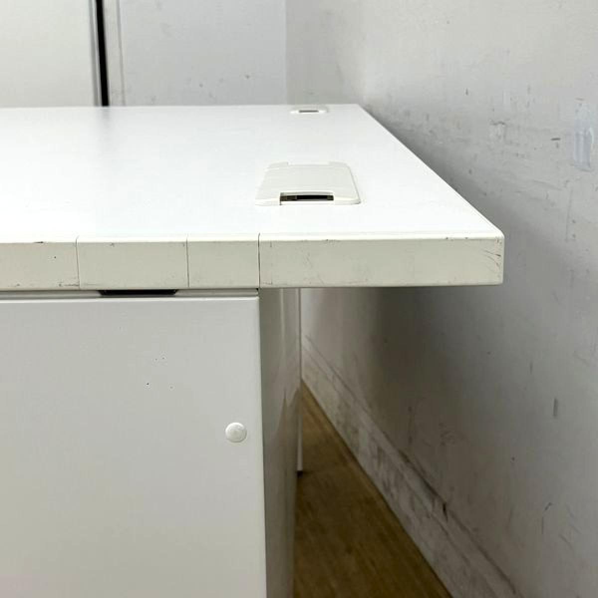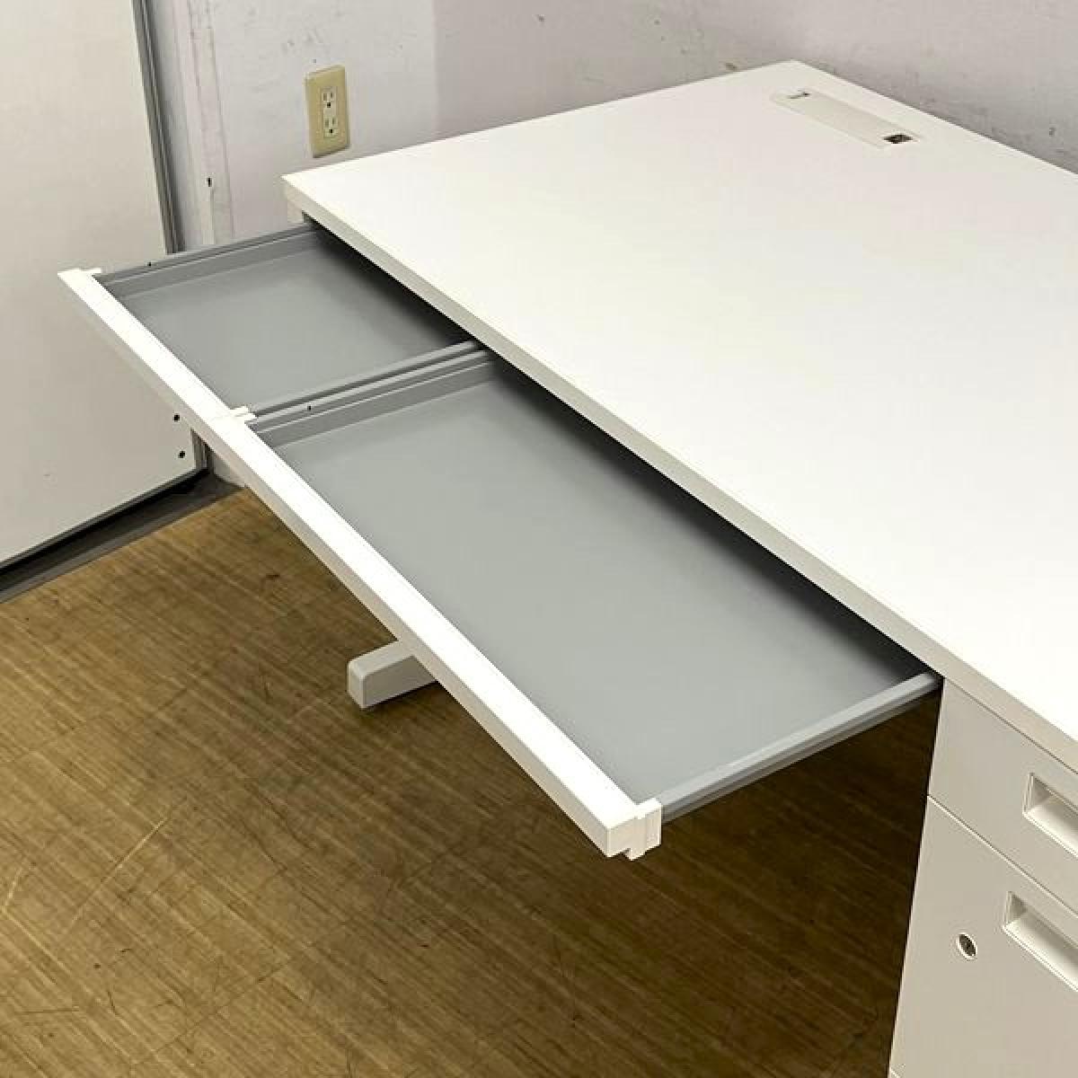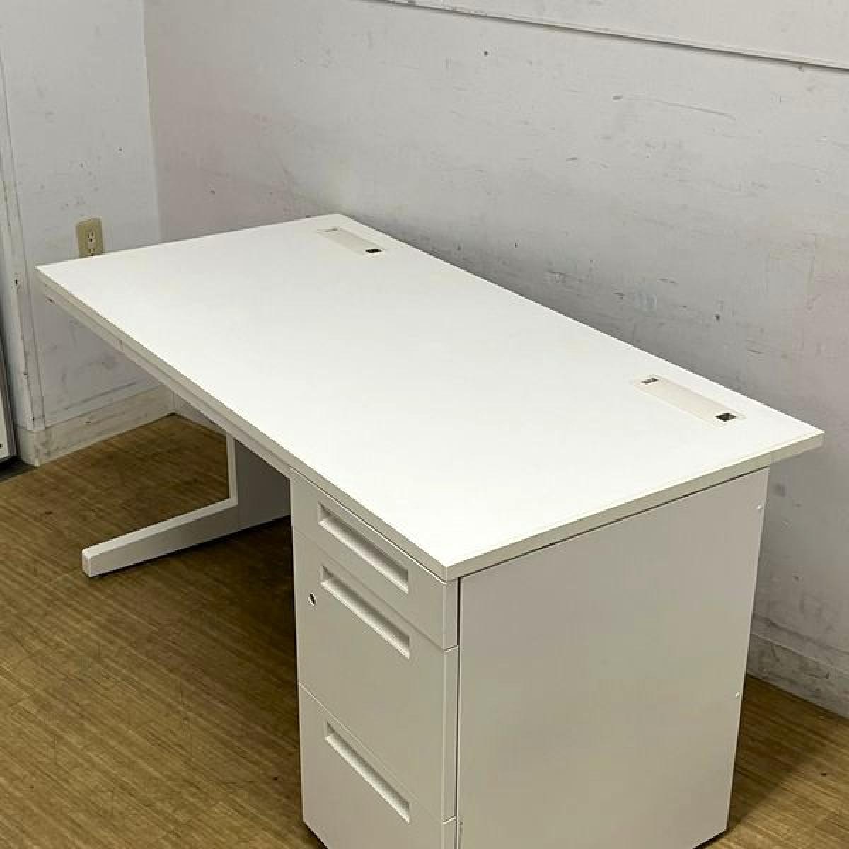 【在庫入替セール】片袖机 イナバ デュエナ W1400のおおきめサイズ 清潔感のあるホワイトカラー 鍵付き ※天板ふちにキズの補修跡あり- 名古屋千種店