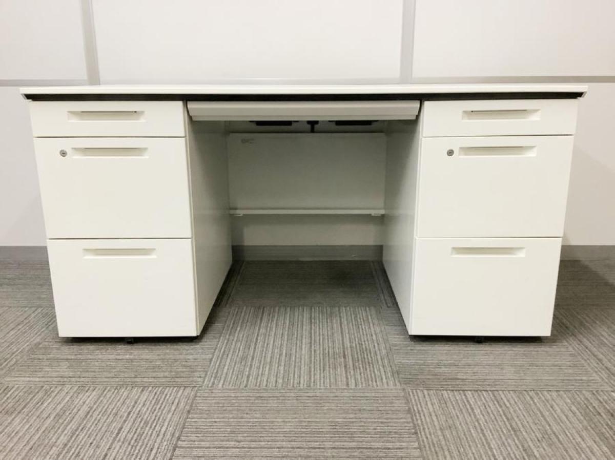 【在庫入替セール】コクヨ iSシリーズ 両袖机 W1400の定番サイズ ホワイト 鍵付き シリンダー錠 両側の引き出しで大容量の収納が可能 【愛知・名古屋・豊田・静岡・浜松】