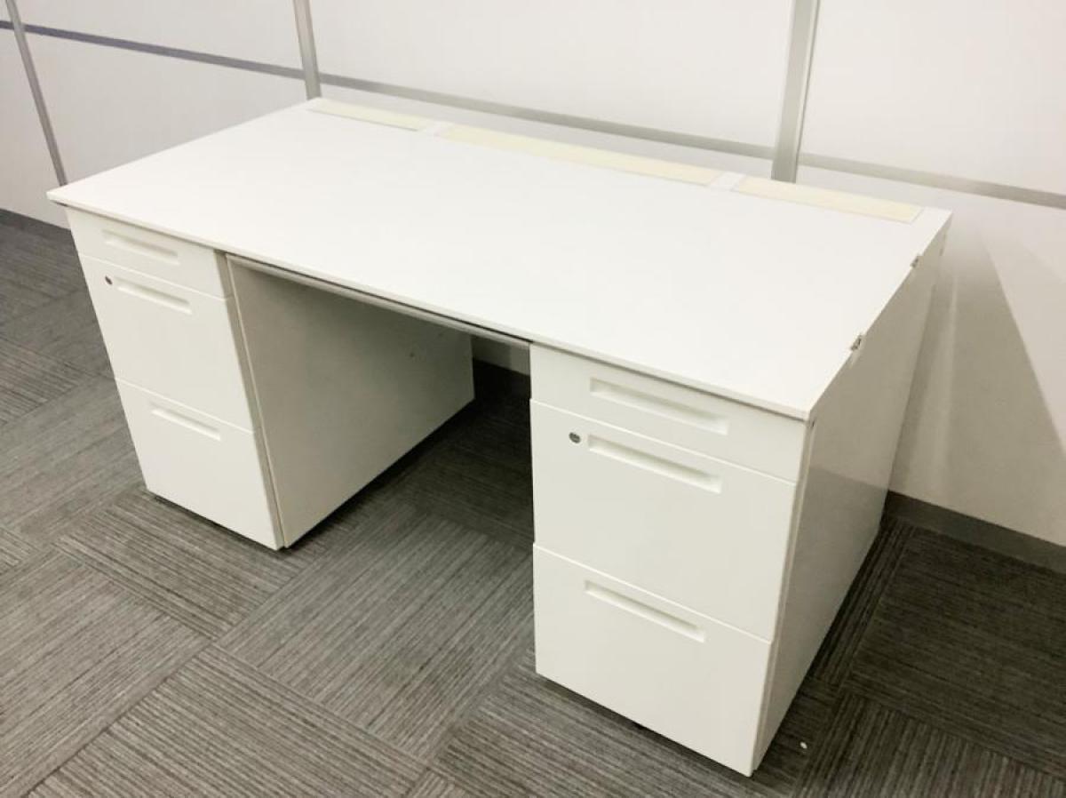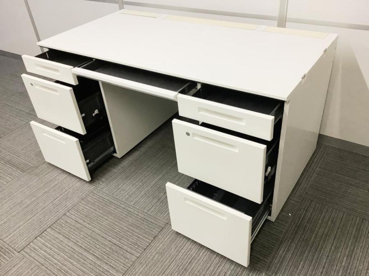 【T11】【商品入替のため、残り4台限り】コクヨ製 アイエス(IS) ホワイト 両袖 デスク W1400xD700xH720サイズ シリンダー 収納スペース充実! 机上をスッキリ整理! 幅広いワークスペースで上長席にもオススメ! W1400両袖机!!