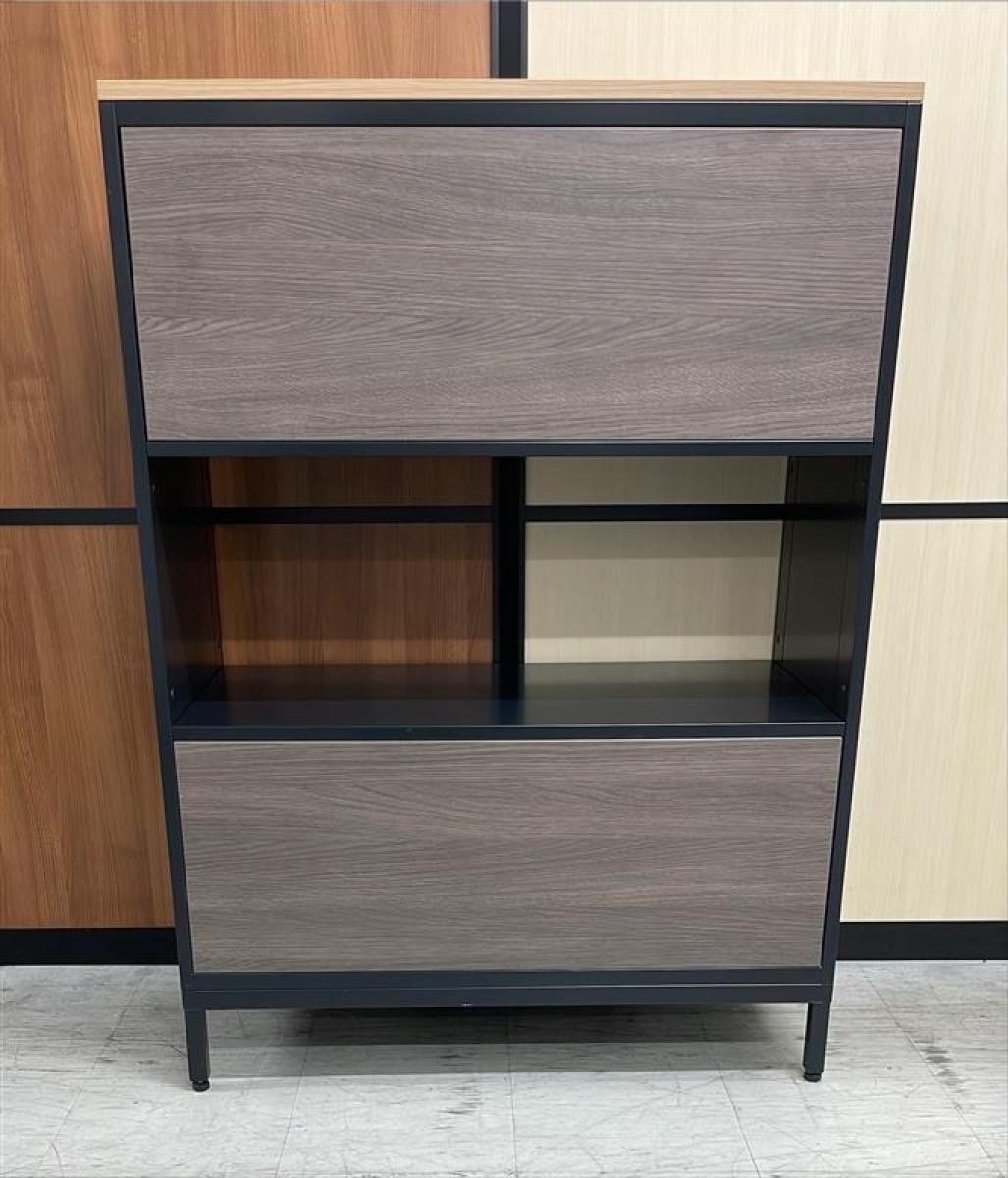 【在庫セール品・1台限定】【T11】■コクヨ製 エディア(オープンタイプ) オープン書庫 ■ブラック ■ナチュラル天板付き ■背面ナチュラル ■2段目オープン ※棚板のピッチ変更は不可となります。【ブラック×ナチュラルでおしゃれなデザイン! 背面からも見栄え良し!】サーキュラーバリューCO2削減量の算出について