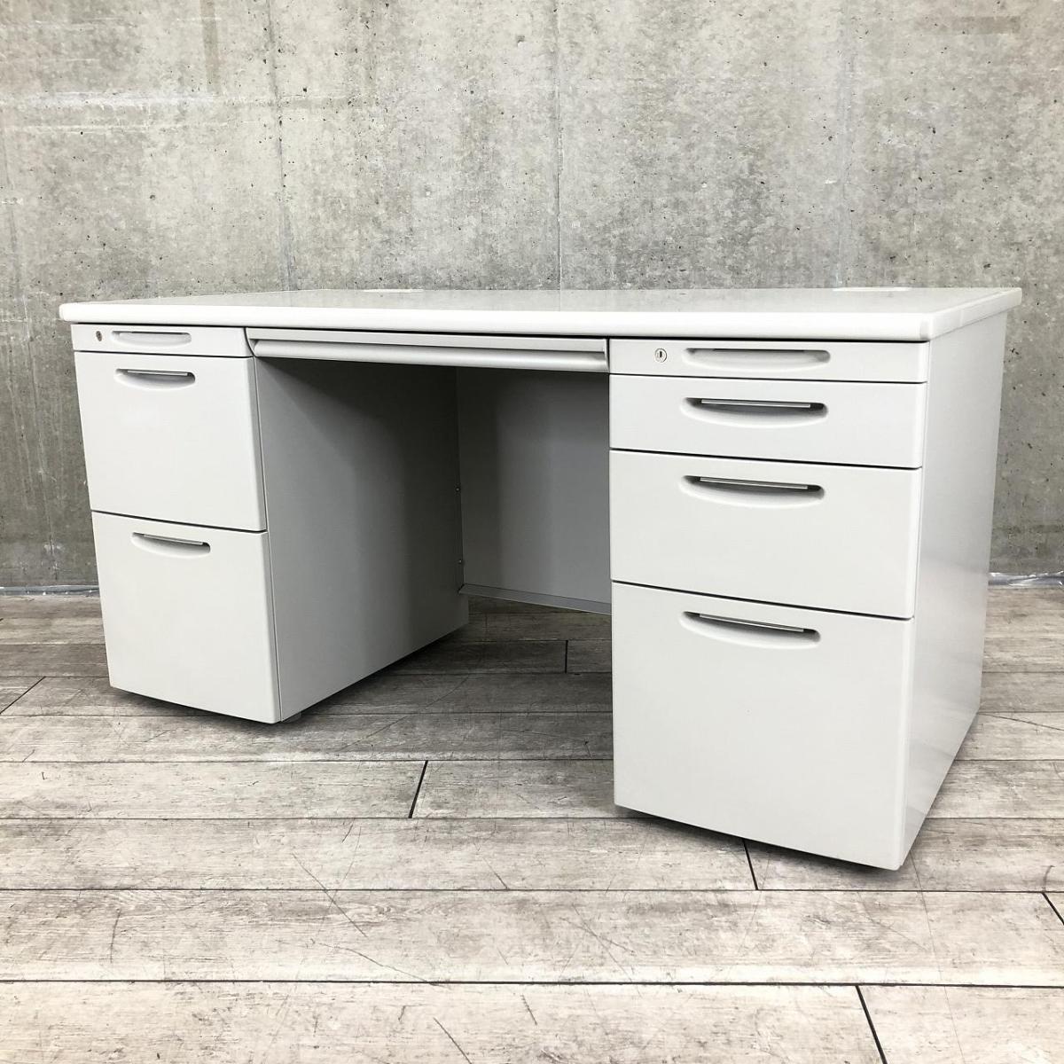 上長席・役員向けサイズ オカムラ SDデスクシステム 両袖机 定番のW1400サイズ 汚れの目立ちにくいニューグレー 鍵付き シリンダー錠