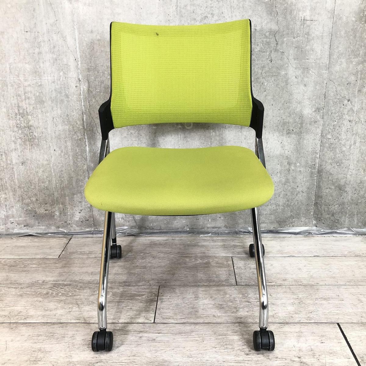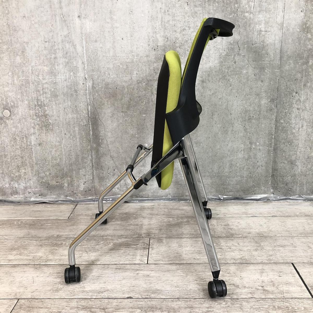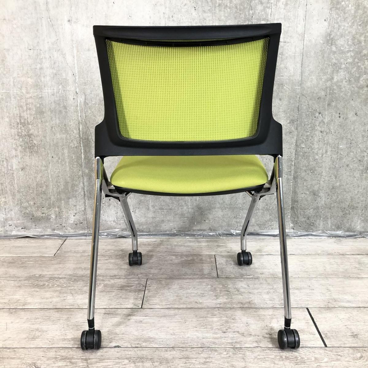 【11/10・5脚入荷予定!】【省スペース収納&キャスター付きの万能チェア!】■イトーキ(ITOKI)製 モノンシリーズ(Monon) ネスティングチェア ミーティングチェア キャスター付 ■背面メッシュ ■グリーン×ブラックシェル- 大阪梅田本店