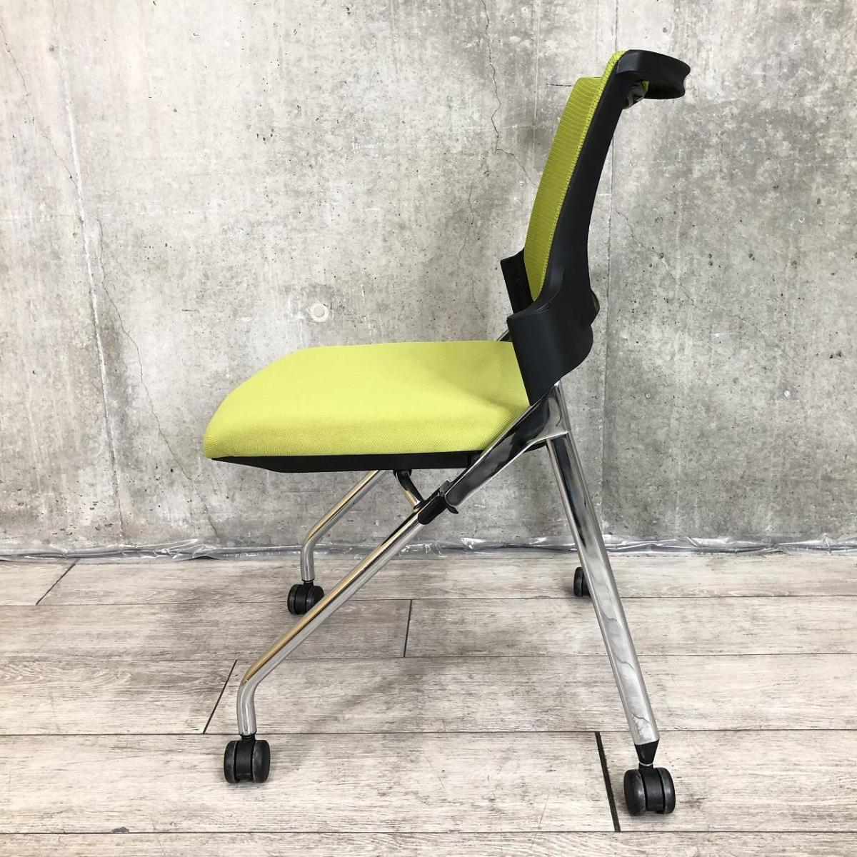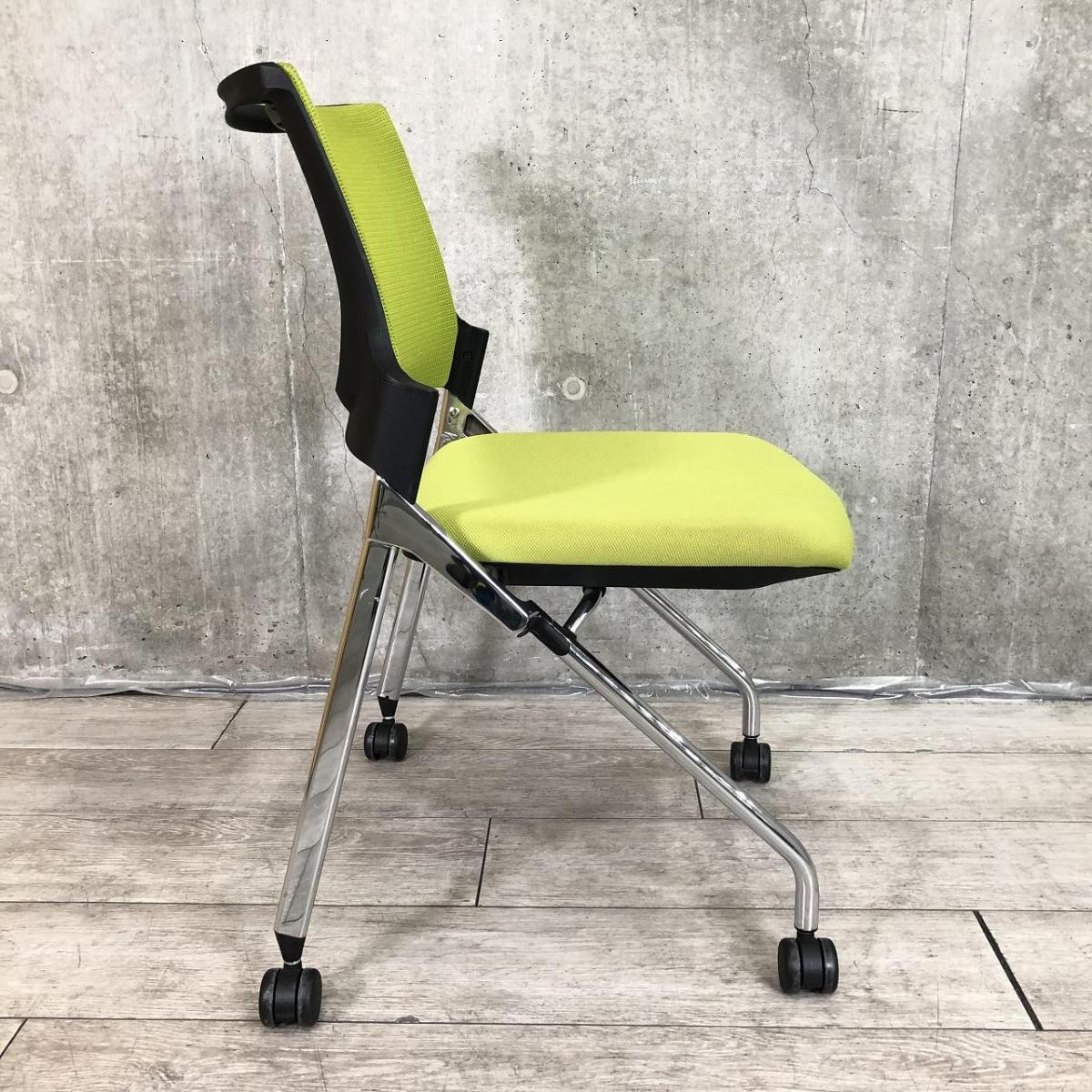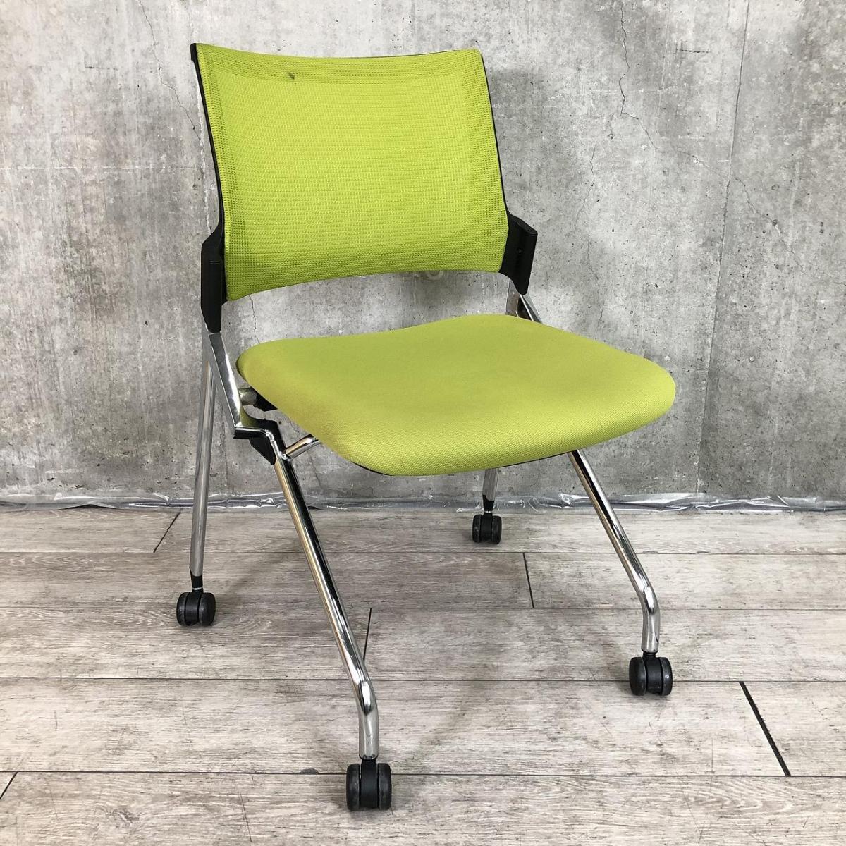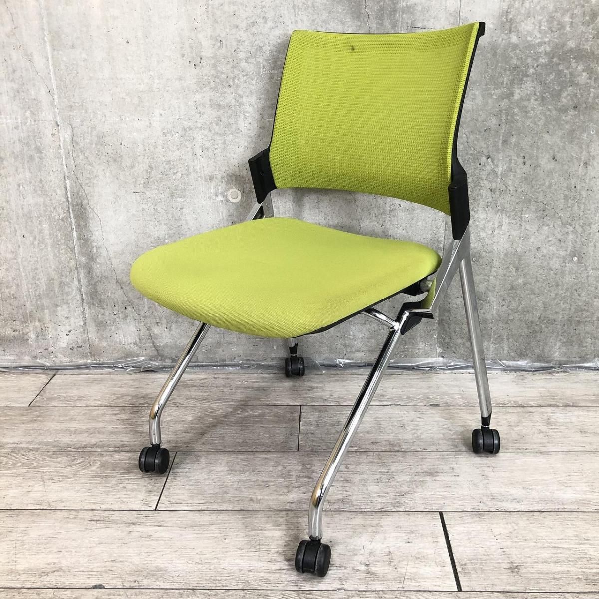 【11/10・5脚入荷予定!】【省スペース収納&キャスター付きの万能チェア!】■イトーキ(ITOKI)製 モノンシリーズ(Monon) ネスティングチェア ミーティングチェア キャスター付 ■背面メッシュ ■グリーン×ブラックシェル- 大阪梅田本店