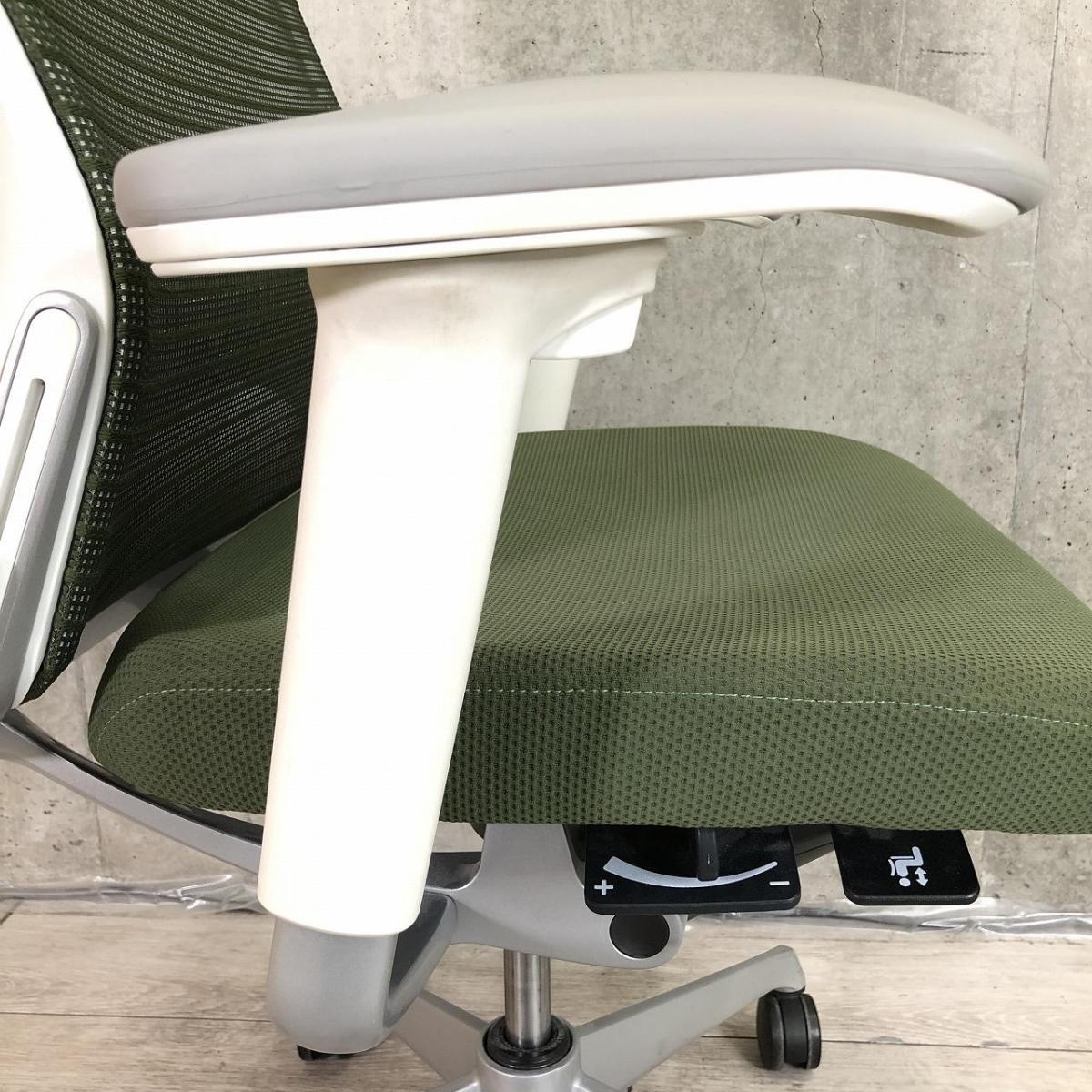 ■Okamura/オカムラ ■コーラルチェア(Choral) ■ダークグリーン×ホワイトシェル ■肘付き/可動肘 ■ハイバック ■背面/メッシュ ■ランバーサポート付 【弊社使用欄:A01043897】