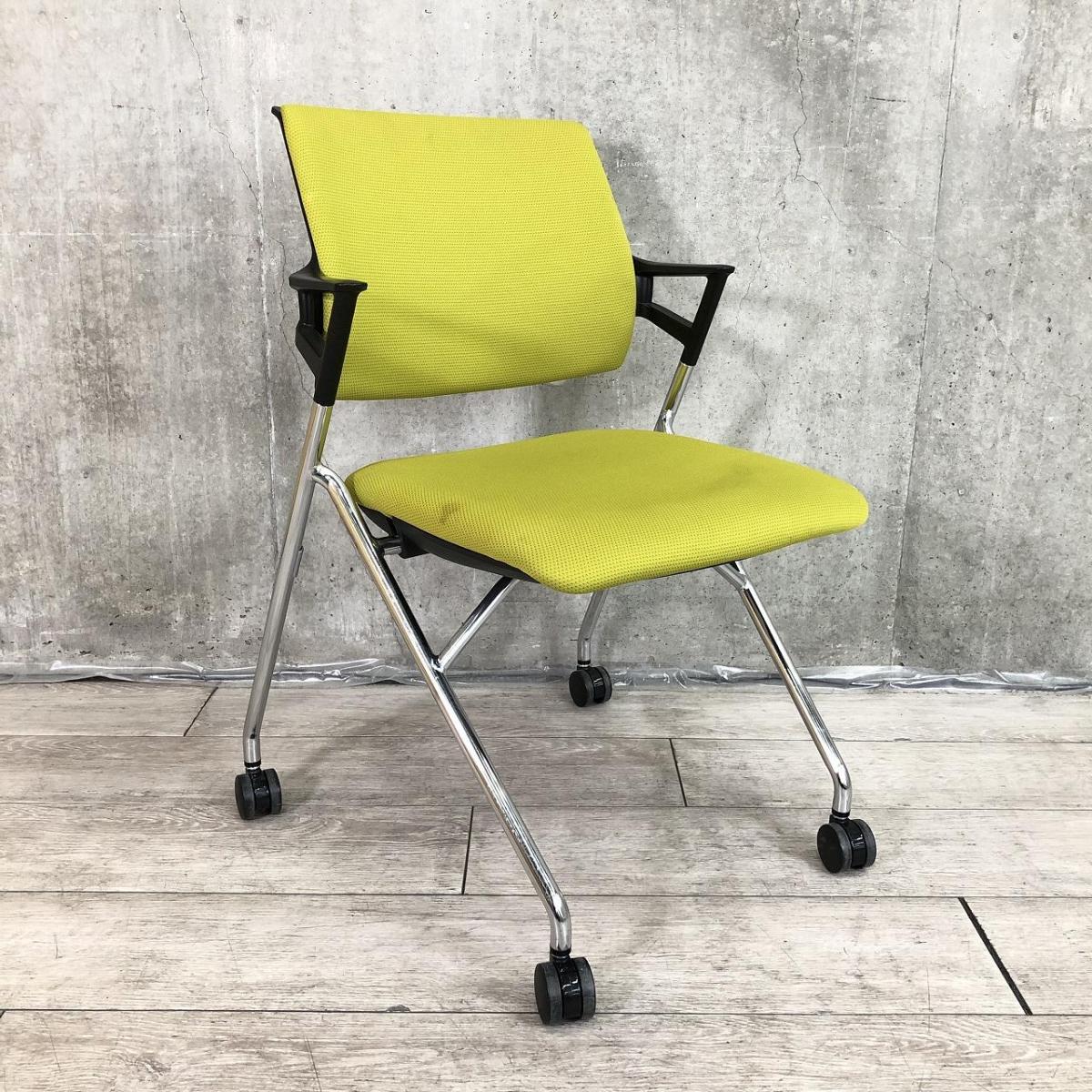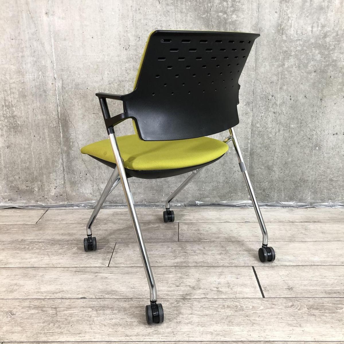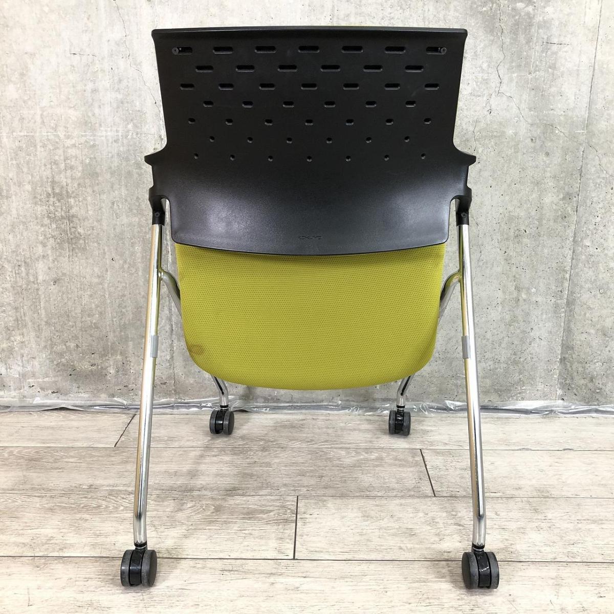 【定価約6万円】【使わない時は重ねて収納!肘付きで長時間の会議も安心の座り心地】■コクヨ(KOKUYO)製 ピエガシリーズ(Piega) ネスティングチェア ミーティングチェア ■固定肘/キャスター付 ■背クッションタイプ ■グリーン×ブラックシェル- つくば店