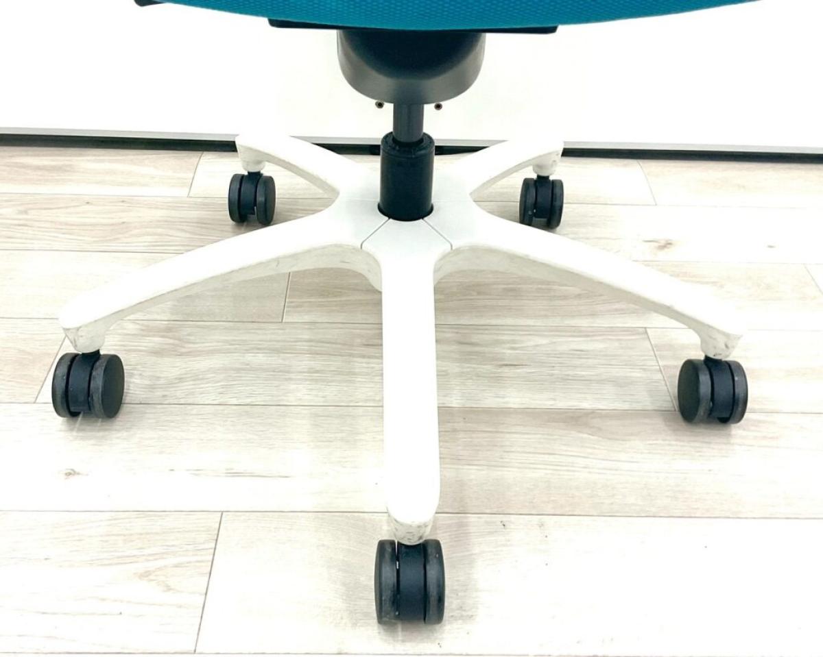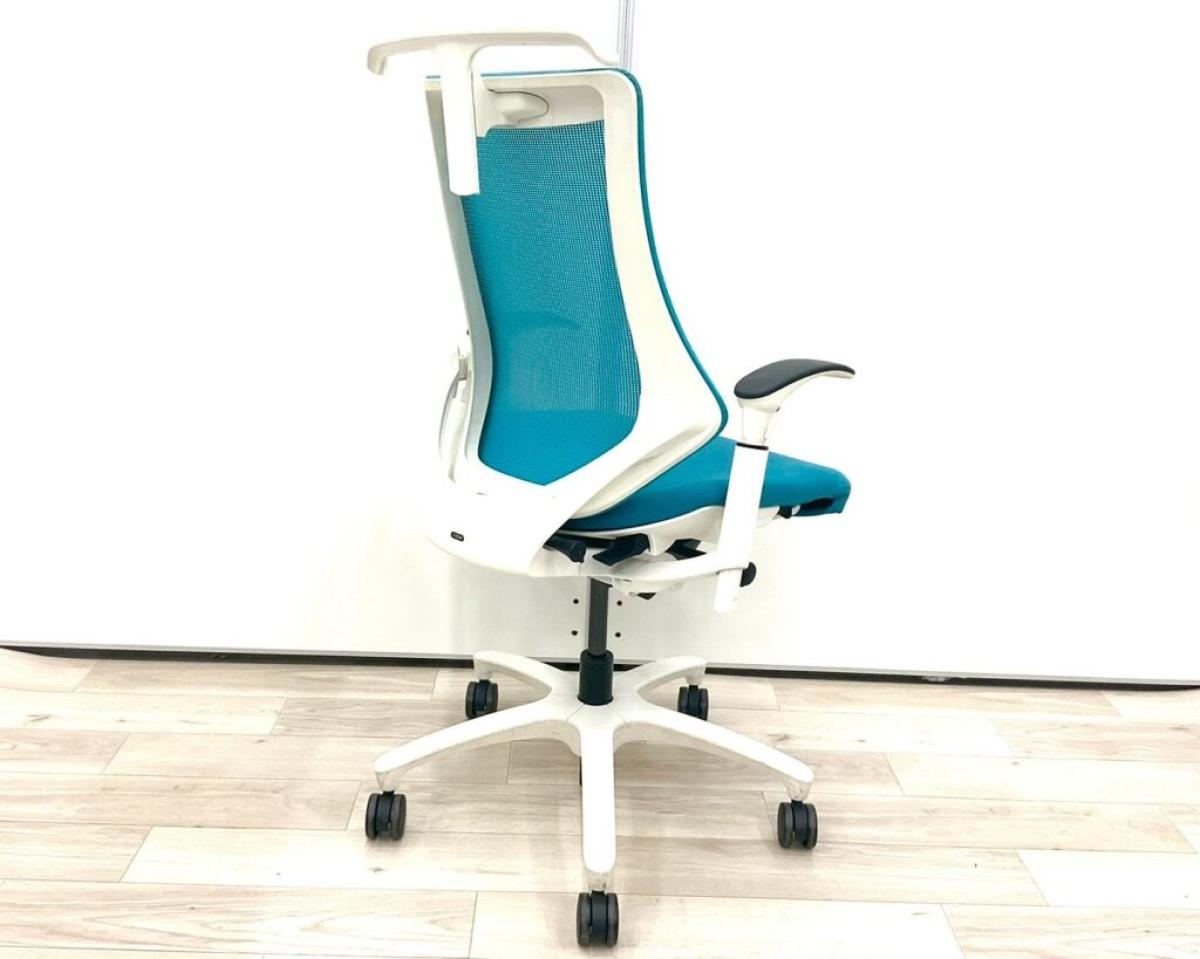 姿勢の変化にフレキシブルに対応!スタイリッシュで座り心地も抜群な大人気の高機能チェアが入荷! ■イトーキ(ITOKI) エフチェア(f)/ストロングブルー×ホワイトフレームメッシュ 背面メッシュ コートハンガー付・可動肘付 旧タイプ