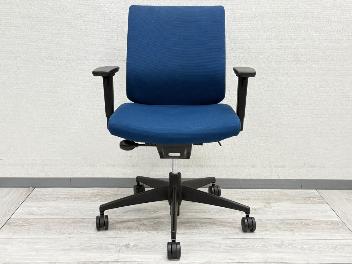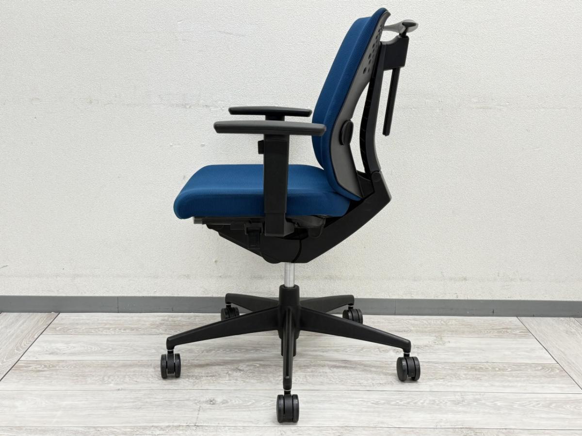 ■コクヨ(KOKUYO)製 ■ウィザード2(wizard2)チェア ■プルシアンブルー×ホワイトシェル ×ブラック脚 ■肘付ローバック ■固定肘・ランバーサポート付き 【弊社使用欄:A01048229 K】【ID】