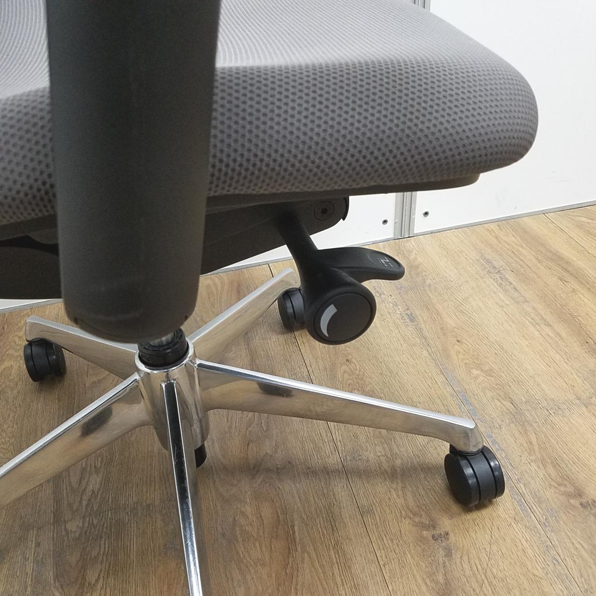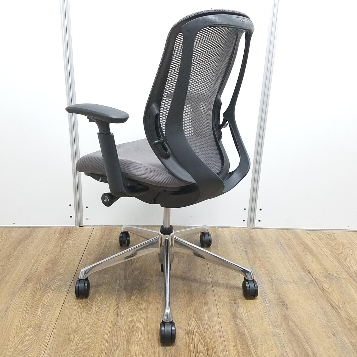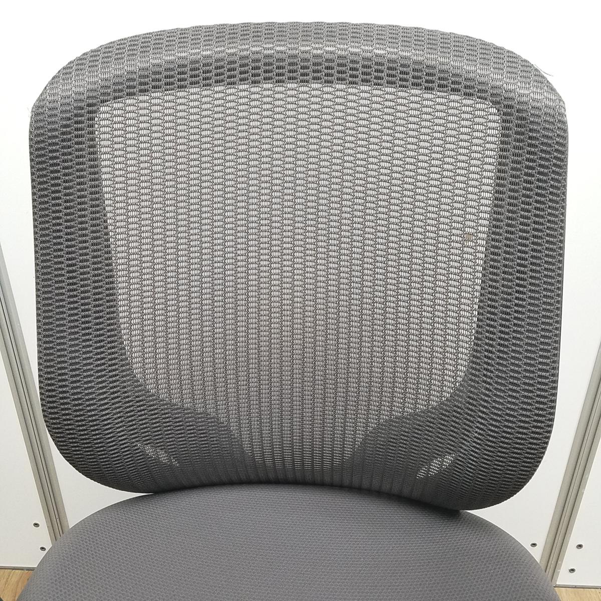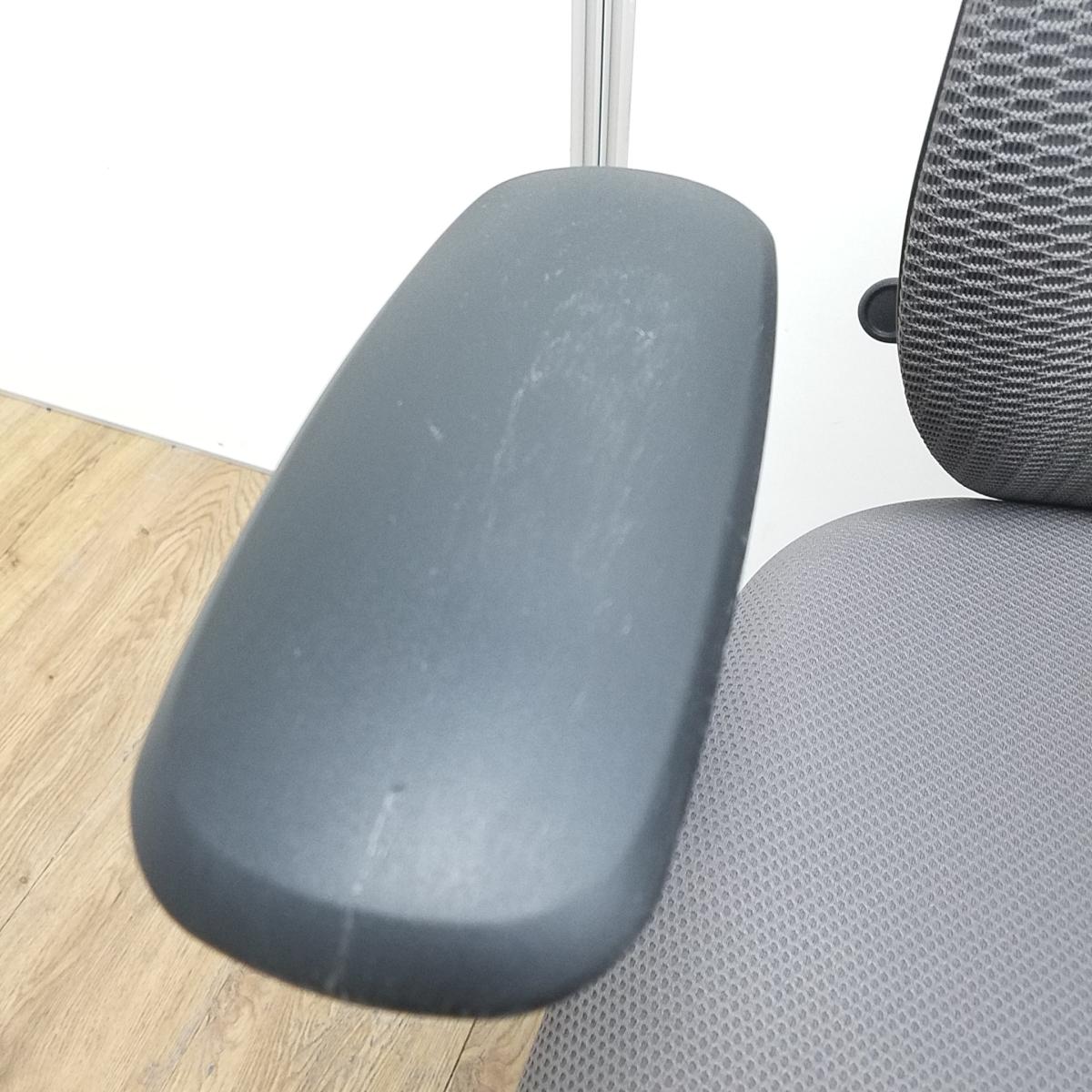 オカムラ製 シルフィ ミディアムグレー ブラックフレーム ローバック 背面メッシュ アジャストアーム※可動肘 ポリッシュ脚 前傾チルト機能付き オカムラ製品で最も人気を集める高機能メッシュチェア! 肘付きローバックチェア!!- 京都東寺店