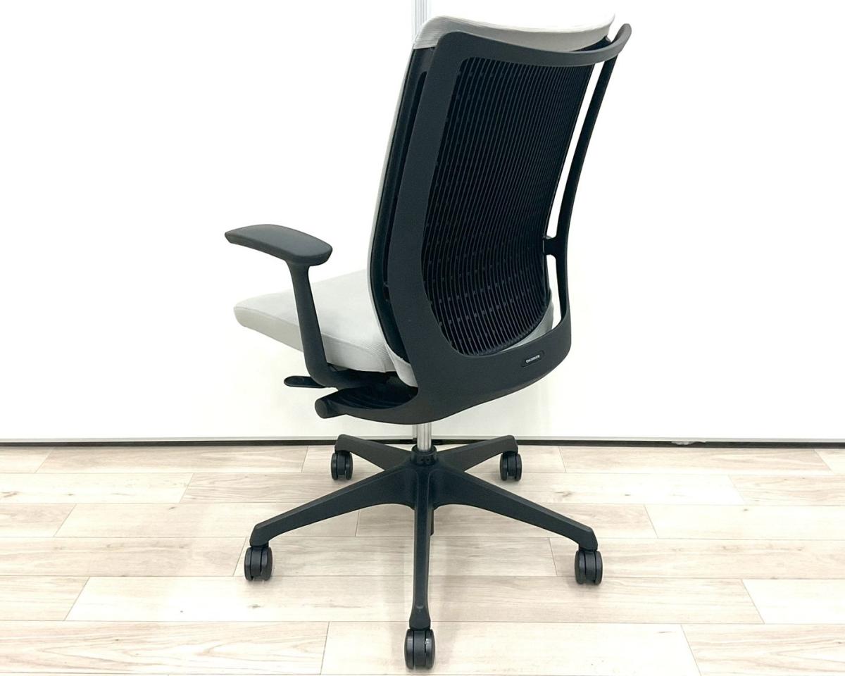 【人間工学に基づいた快適な座り心地!背によりかかるとバックシェルのグリッドが変形し、やさしくワーカーの身体を支えます!】■オカムラ(okamura)製 ヴィスコンテチェア (Visconte) 肘付ハイバック プレーンタイプ ■固定肘 ■ライトグレー×ブラックシェル