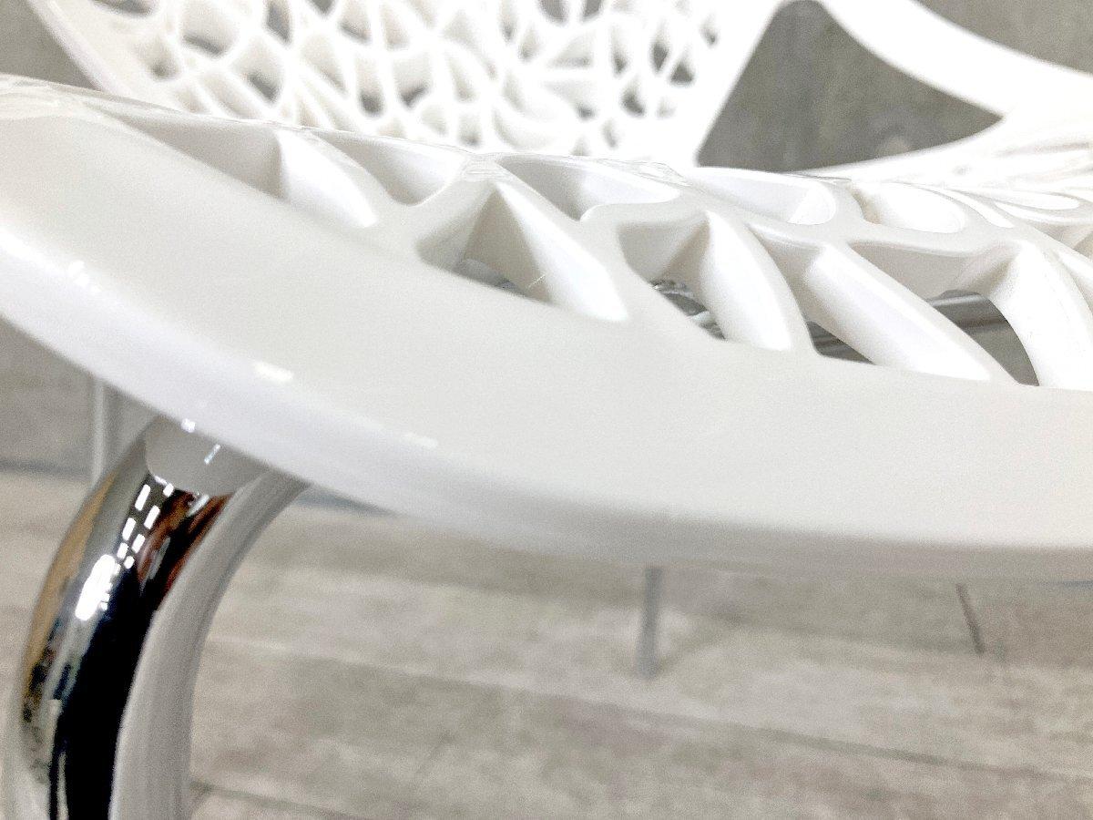 軽量で持ち運びやすく、ダイニングからベランダ、テラスまで、屋内外を問わず幅広いシーンで活躍します。素材にはナイロン樹脂を採用し、扱いやすさと耐久性を両立しました。 透明感のあるモダンなフォルムは、空間に軽やかなアクセントを添えてくれます。