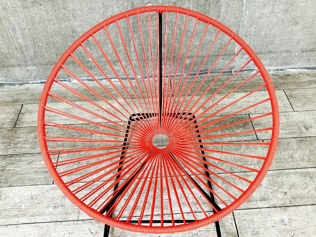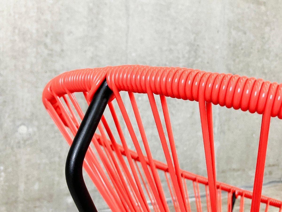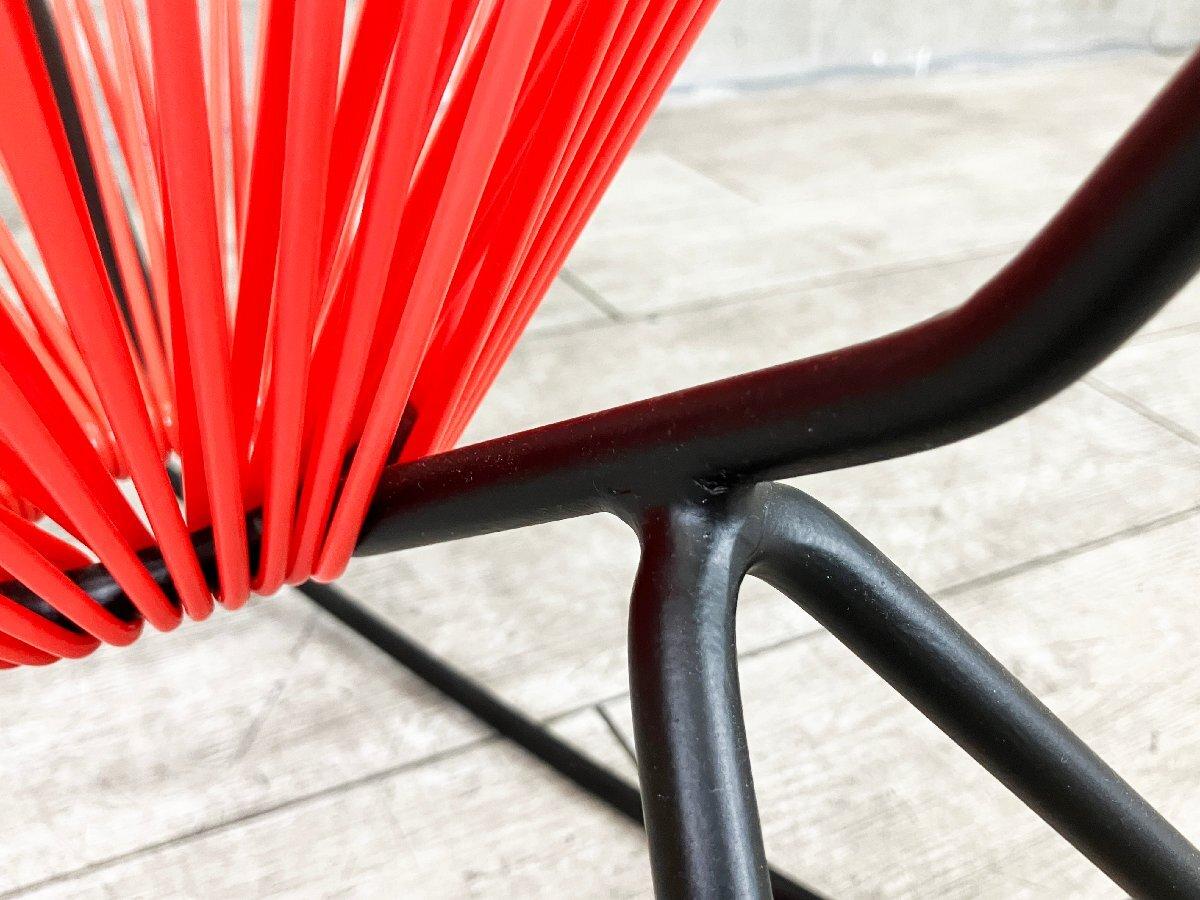 スチールのフレームにPVCコードを巻きつけたシンプルな構造で、メキシコのクラフトマンたちの手でひとつひとつ丁寧に作られています。PVCコードの特性でもある柔軟性によって生まれる、体が包み込まれるような感覚の快適な座り心地に加え、ロッキングもできる快適なチェアです。