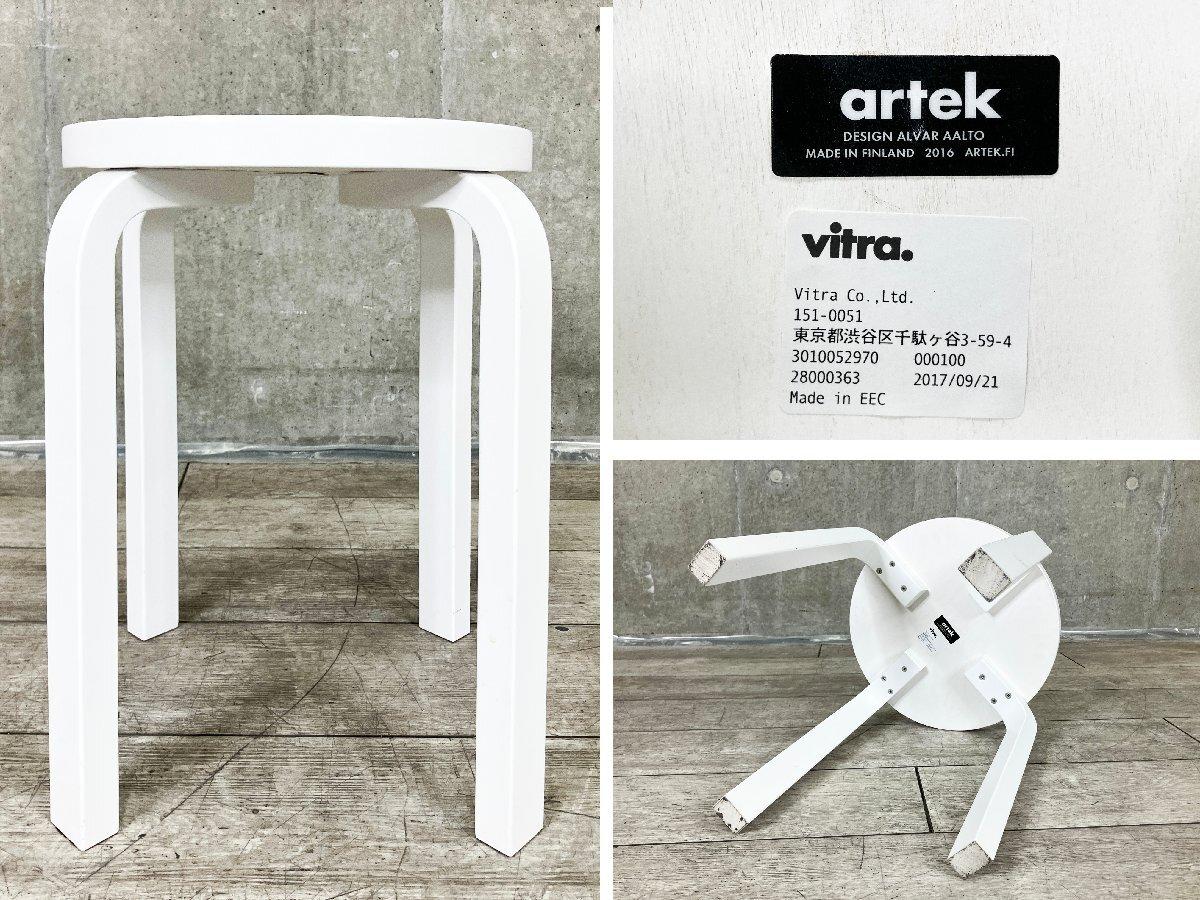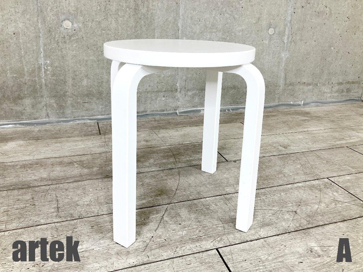 A)artek/アルテック スツール60 アルヴァ・アールト 北欧 フィンランド 4本足 ホワイトラッカー- デザイナーズ家具センター
