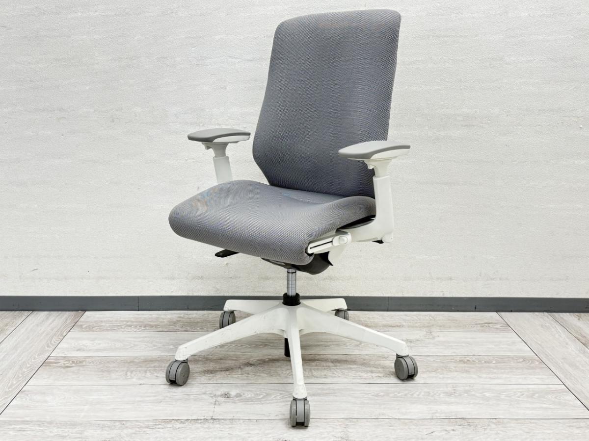 【22年度製】オカムラ製 スフィア グレー ホワイトフレーム 肘付き ハイバック アジャストアーム※可動肘 どんな体格の方でも快適な座り心地をご提供! 肘付きハイバックチェア!!