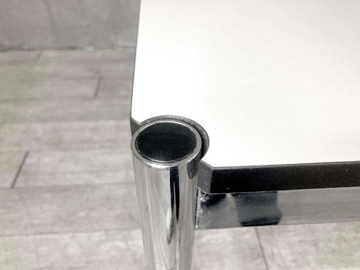 シンプルな構成とミニマルなデザインながら、どこかエレガントさを漂わせる、非常にモダンなテーブルです。 オフィス用デスクとしての印象が強い一方で、ヨーロッパではダイニングテーブルとしても広く愛用されています。 機能性と洗練された美しさを兼ね備えた、時代を超えて選ばれる一台です。