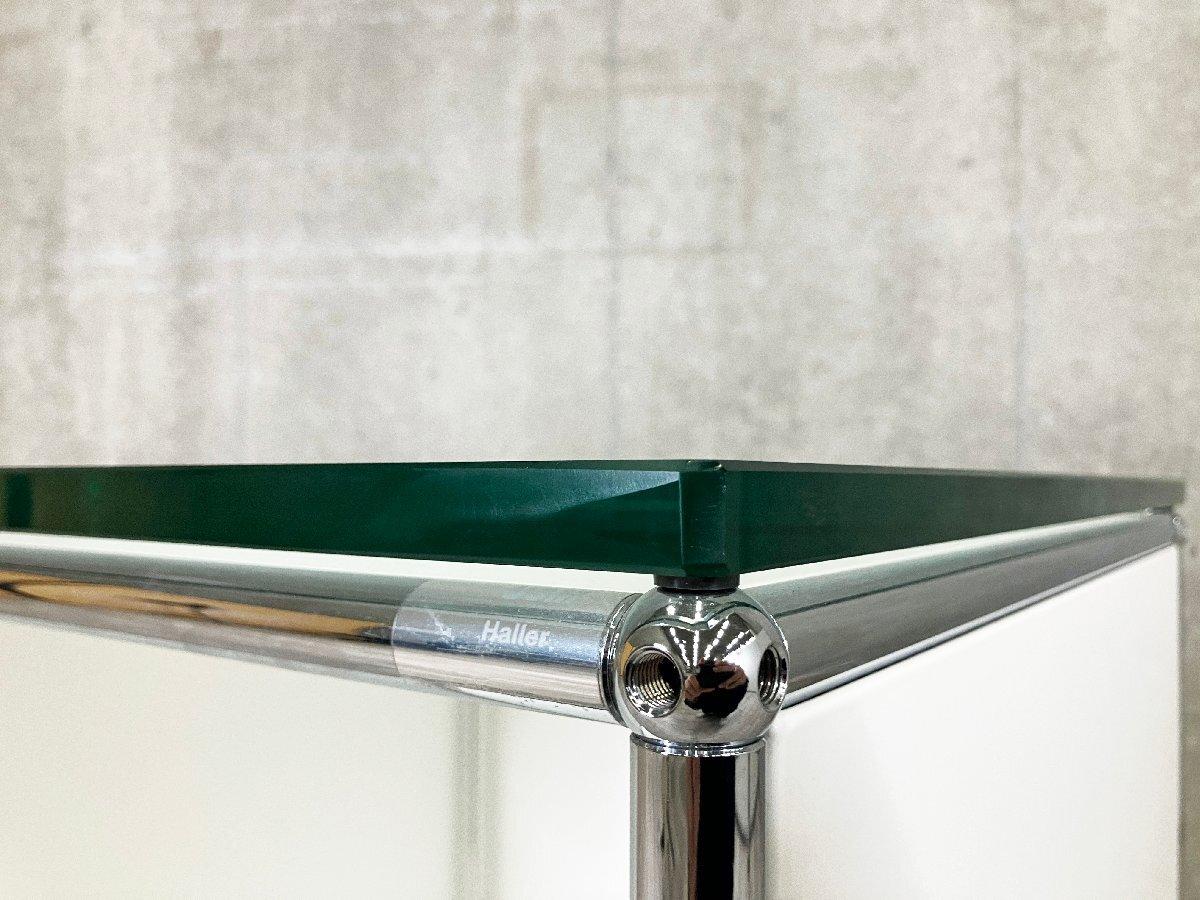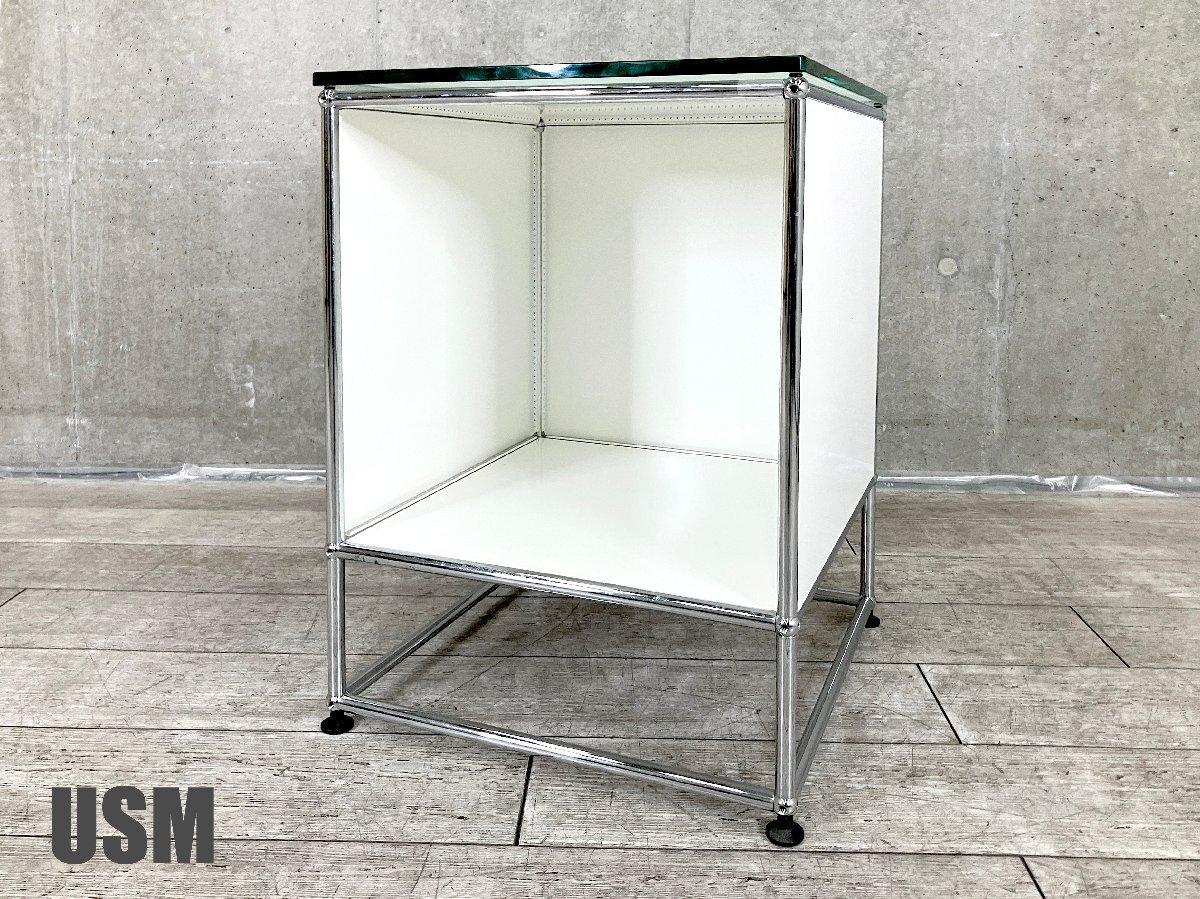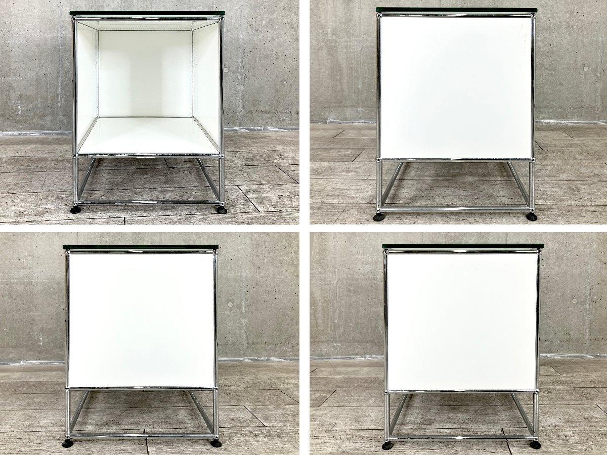 USMハラー 1連1段 脚付きキャビネット/ナイトテーブル ピュアホワイト D500 ガラストップ- デザイナーズ家具センター