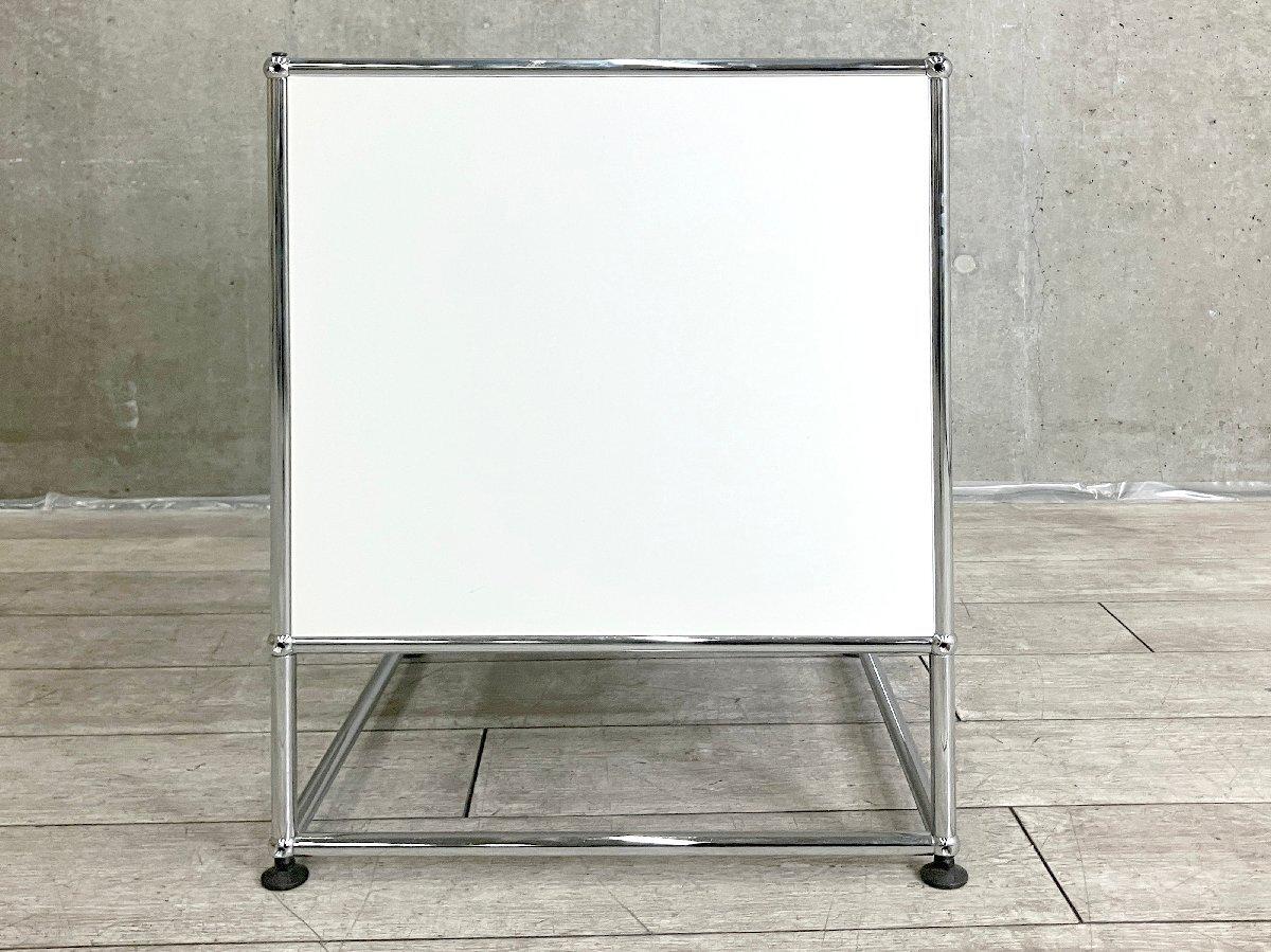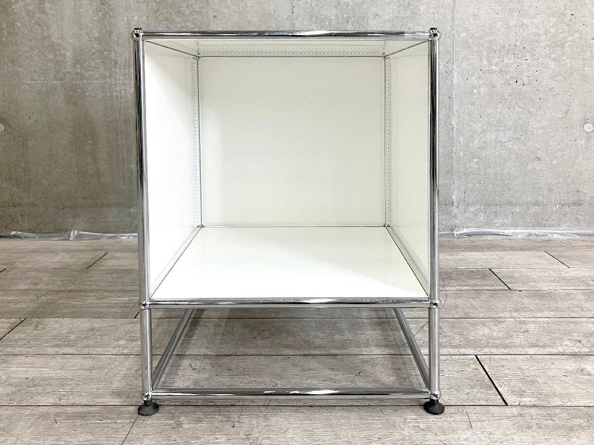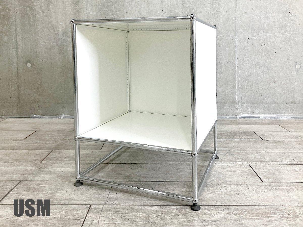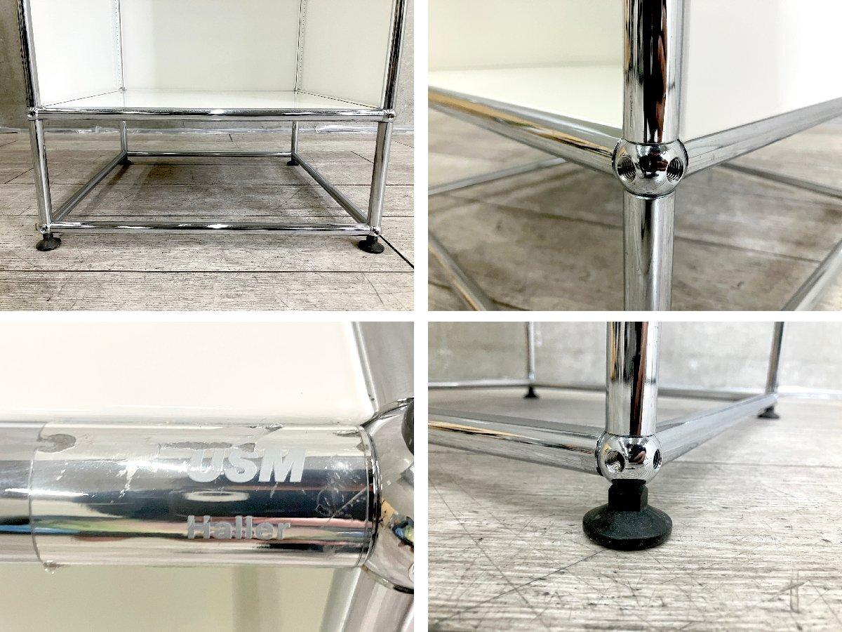シンプルな立方体モジュールに脚部を組み合わせたデザインで、軽やかな印象と実用性を両立しています。 幅・奥行ともに500mmとコンパクトながら、天板下に収納スペースを確保。ベッドサイドやソファ横など、さまざまなシーンで活躍します。 無駄のない構造と精密なスチールチューブの接合が生み出す、USMならではの洗練された存在感が魅力です。
