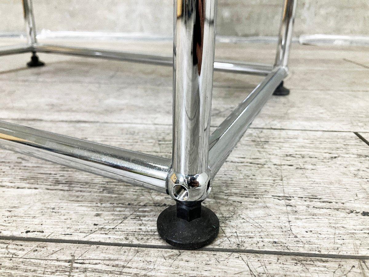 上段はディスプレイや植物、照明などの“見せる”アイテムに、 中段は日常使いの小物や読みかけの書籍など、手が届きやすい高さとして使いやすいバランスです。 下段が開放されていることで、床面の掃除がしやすく、家具としての存在感が重たくならないこともポイント。 置く場所に圧迫感を与えず、空間に余白を残せるUSMらしい美しいプロポーションです。