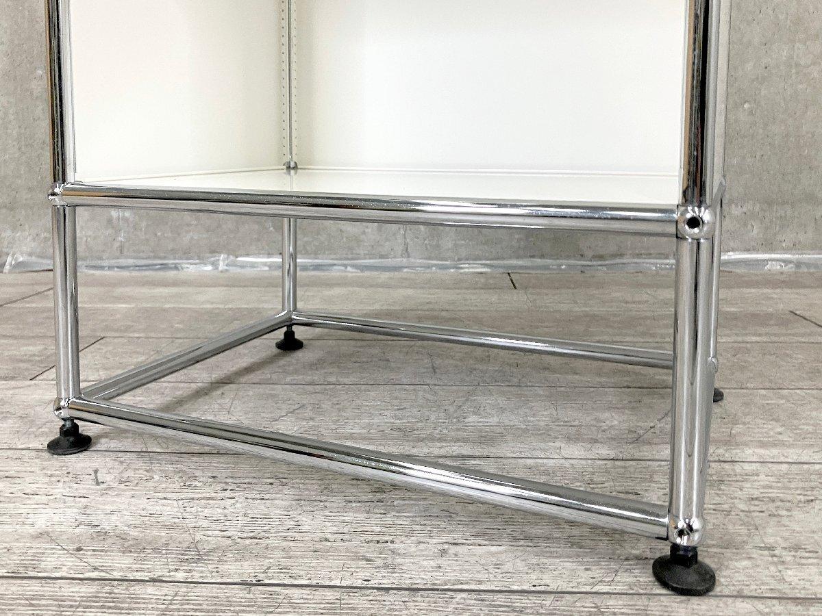 USMハラー 1連1段 脚付きキャビネット/ナイトテーブル ピュアホワイト D500 ガラストップ