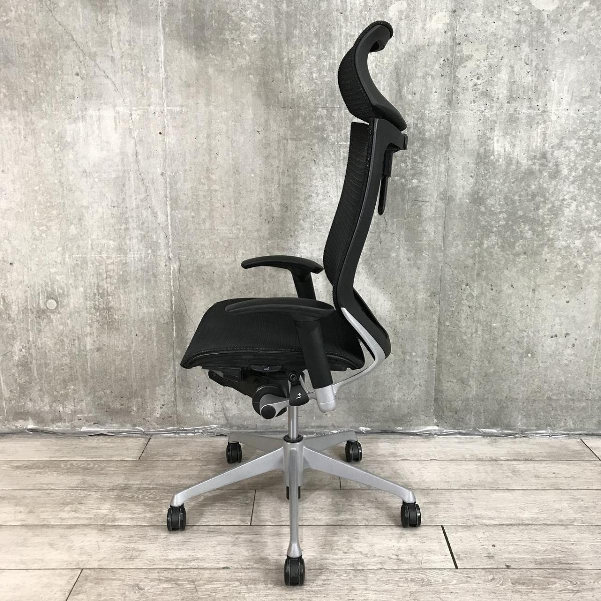 【オフィスの執務室、会議室におすすめ!】■オカムラ(okamura)製 バロン(Baron)チェア 肘付き ハイバック ■背・座面メッシュ ■可動肘 ■ヘッドレスト付き ■ブラック【硬めの座面が大人気!国産メッシュチェアの代表格!】