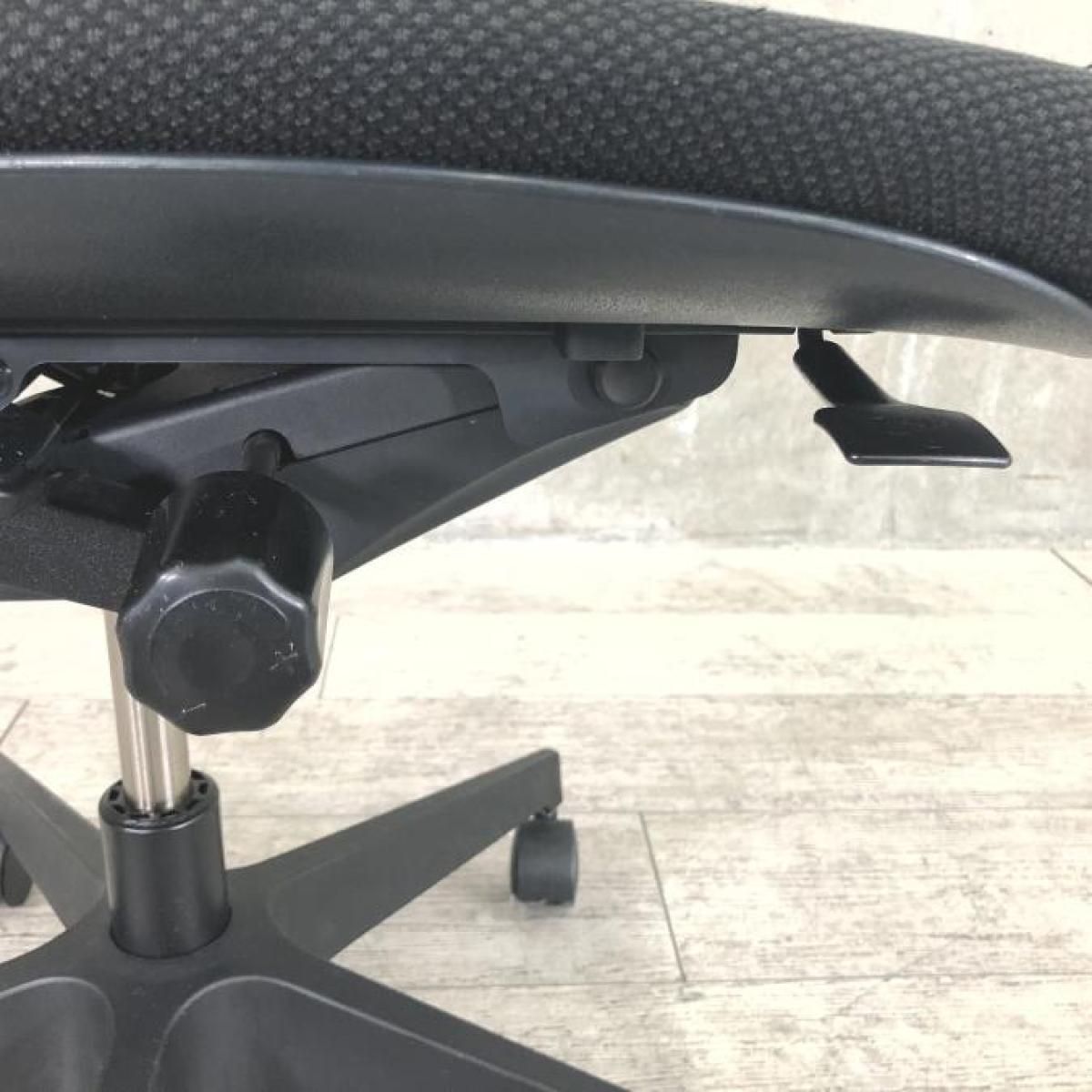 例えば、座面は、イトーキ独自の"ベンディングシート"という機構により、クッション、インターシェル、空洞という三層構造になっています。 この真ん中に挟まっているインナーシェルが、着座時の姿勢に合わせて体重を分散してくれるので、どんな姿勢でも体になじみ、疲労を軽減してくれます。 さらに、座面は前後に4センチほど奥行きを調整でき、前傾姿勢で座りたい、深く腰掛けたい、膝裏を圧迫されたくないなど、個人の好みに合った快適さにカスタマイズが可能となっています。