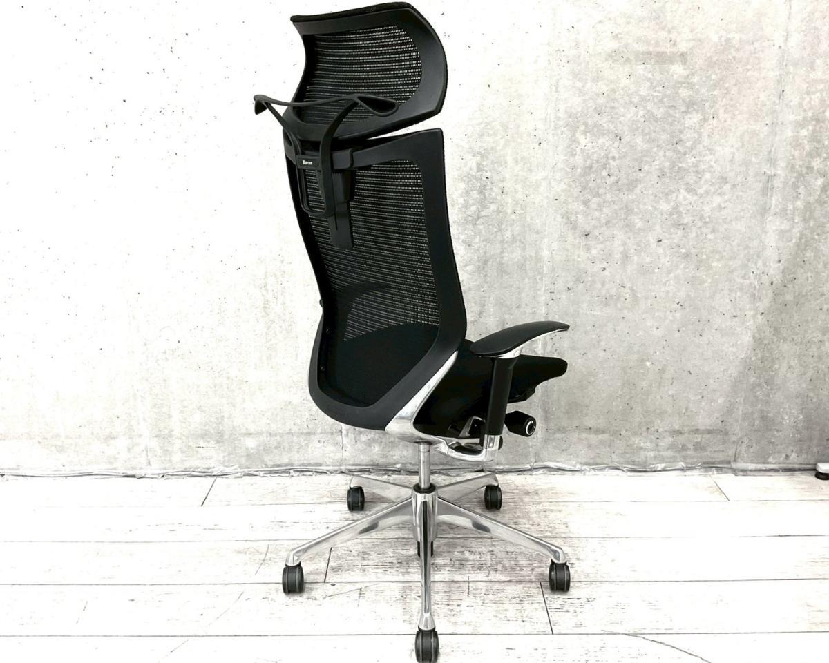 【定価約20万円】【レアなヘッドレスト付チェア!役員のかたや在宅ワークの方などにおすすめ!】■オカムラ/バロンチェア ■背面メッシュ ■ブラック ■可動肘付サーキュラーバリューCO2削減量の算出について