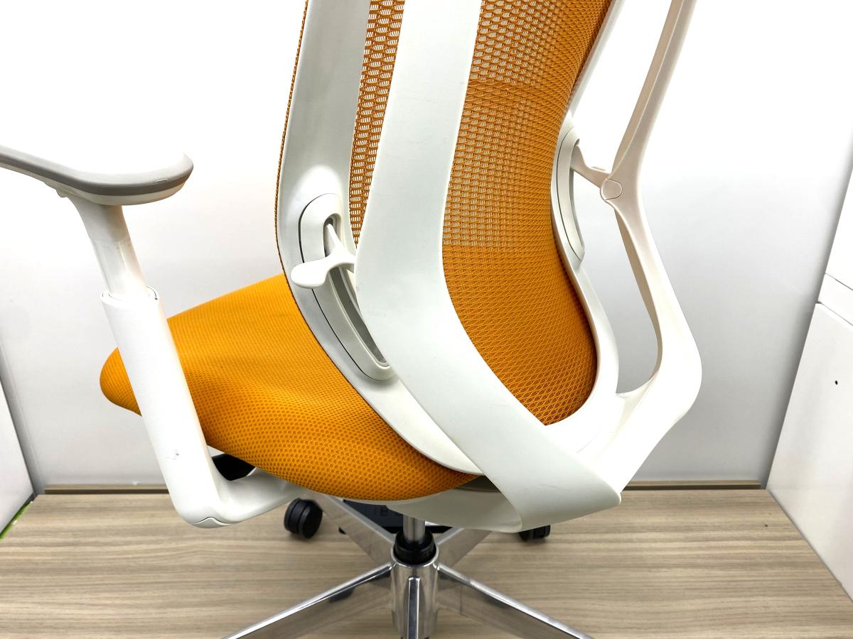 【在庫入替セール品!】【背のカーブを変えられる新感覚のオフィスシーティング!】■オカムラ シルフィーチェア 可動肘付 オレンジ ハンガー付 ホワイトフレーム ■新感覚のオフィスシーティング!【Okamrua Sylphy】
