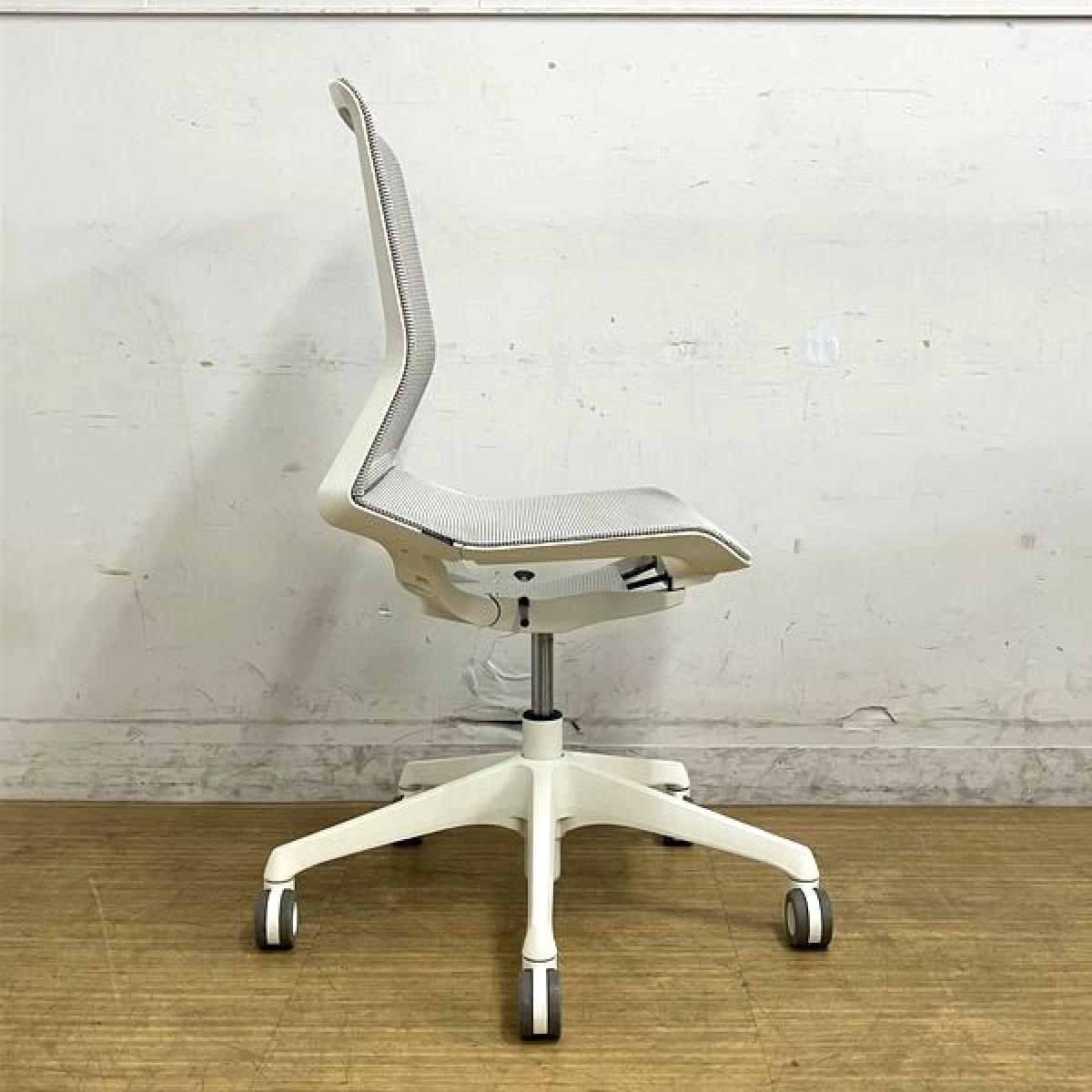 【2023年製のため状態良好】オカムラ CYNARA(シナーラ) 肘無しモデル スタンダードカラー ホワイト ホローキャスター(ウレタン) 軽快なメッシュ素材でミニマルなデザイン性- 名古屋千種店