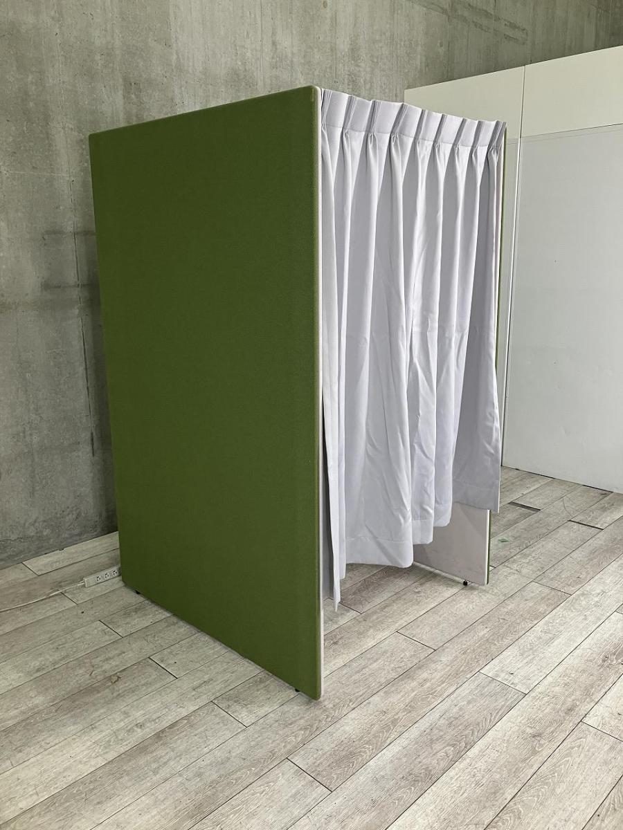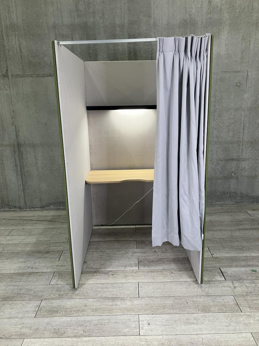 【吸音性能に優れ、集中を促すパーテーションブース!】■ウチダ(UCHIDA)製 ラナパネル(Lana Panel) ソロワークブース ■セミクローズタイプ ■グリーン×グレー ■照明・カーテン付き【弊社使用欄:A01032951】- 日本橋店