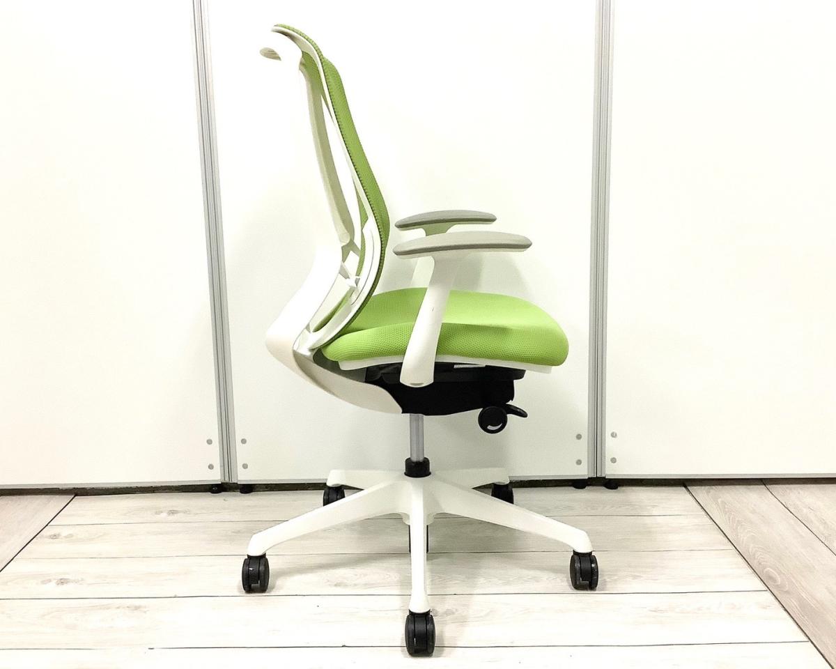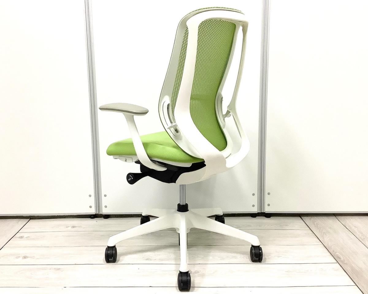 【前傾チルト機能付き!オカムラ製品で最も人気を集める高機能メッシュチェア!】■オカムラ(okamura)製 シルフィ(Sylphy)チェア ハイバック ■可動肘・ハンガー付き ■ライムグリーン × ホワイトシェル
