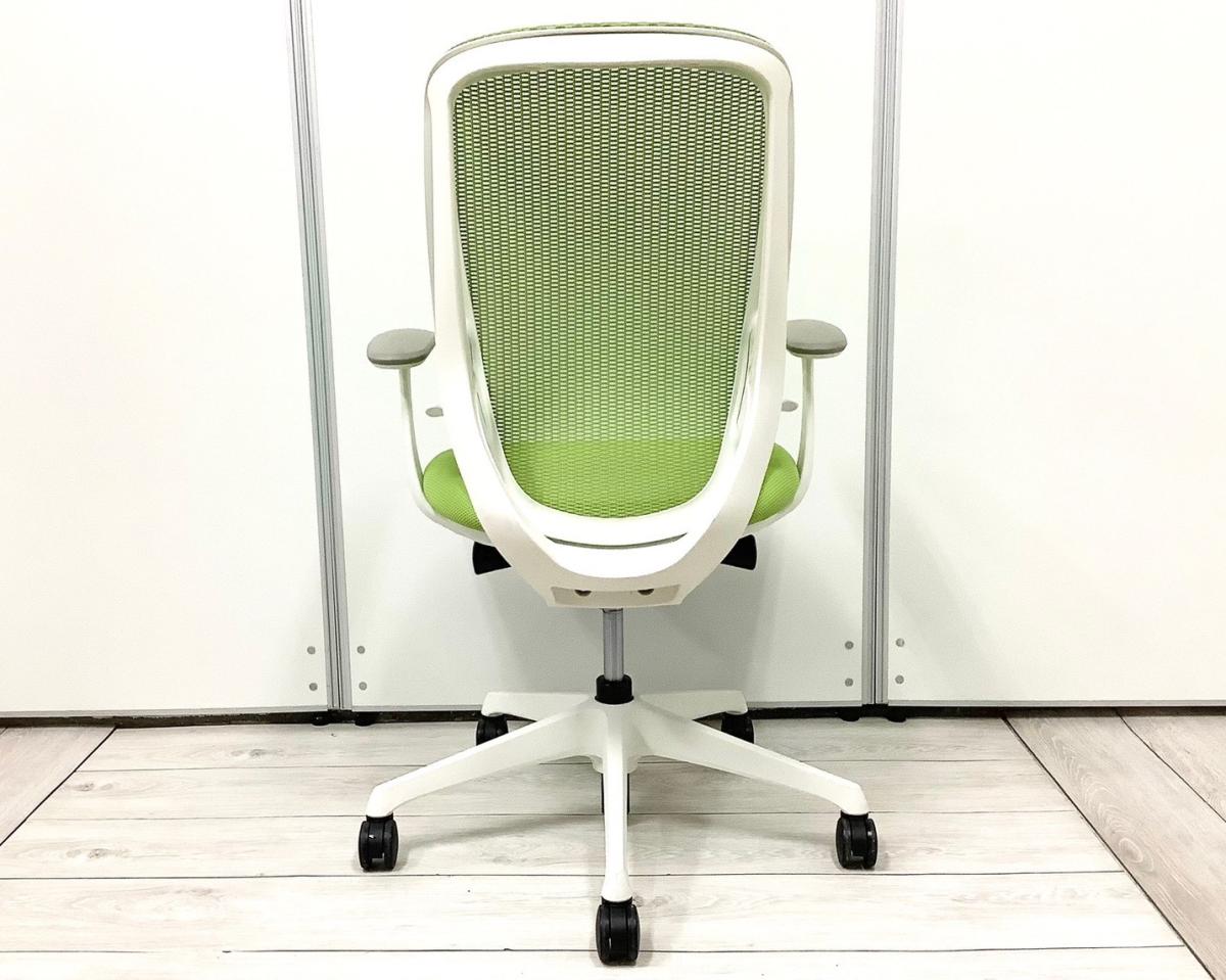 【前傾チルト機能付き】オカムラ製品で最も人気を集める高機能メッシュチェア!/オススメ(おすすめ) /人気商品【弊社使用欄:A01036032】■肘付き ハイバック 背面メッシュ ■可動肘 ■ライムグリーン×ホワイトシェル/オカムラ(okamura)製 シルフィ(Sylphy)