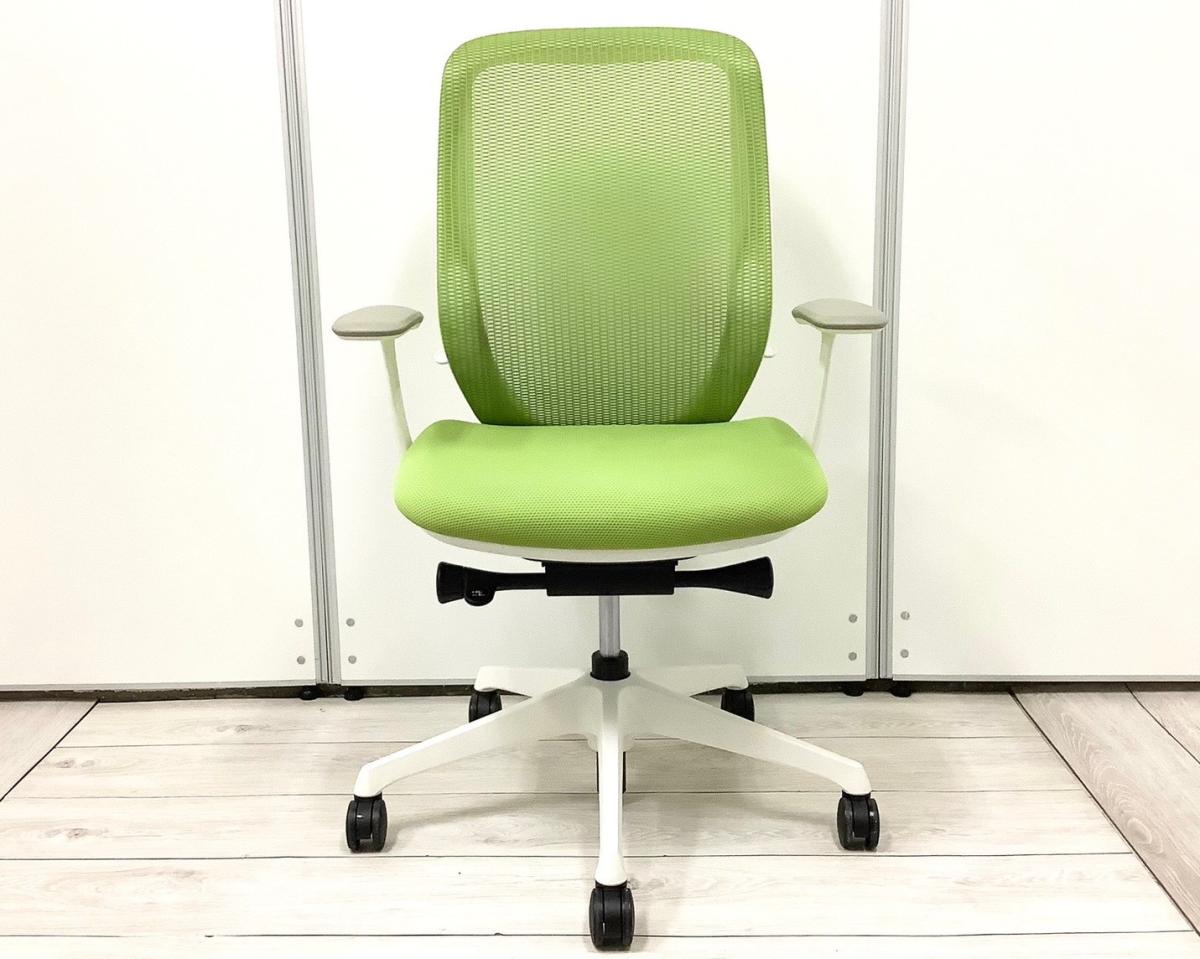 【前傾チルト機能付き!オカムラ製品で最も人気を集める高機能メッシュチェア!】■オカムラ(okamura)製 シルフィ(Sylphy)チェア ハイバック 肘付き ■可動肘 ■ライムグリーン × ホワイトシェル【状態良好品!】