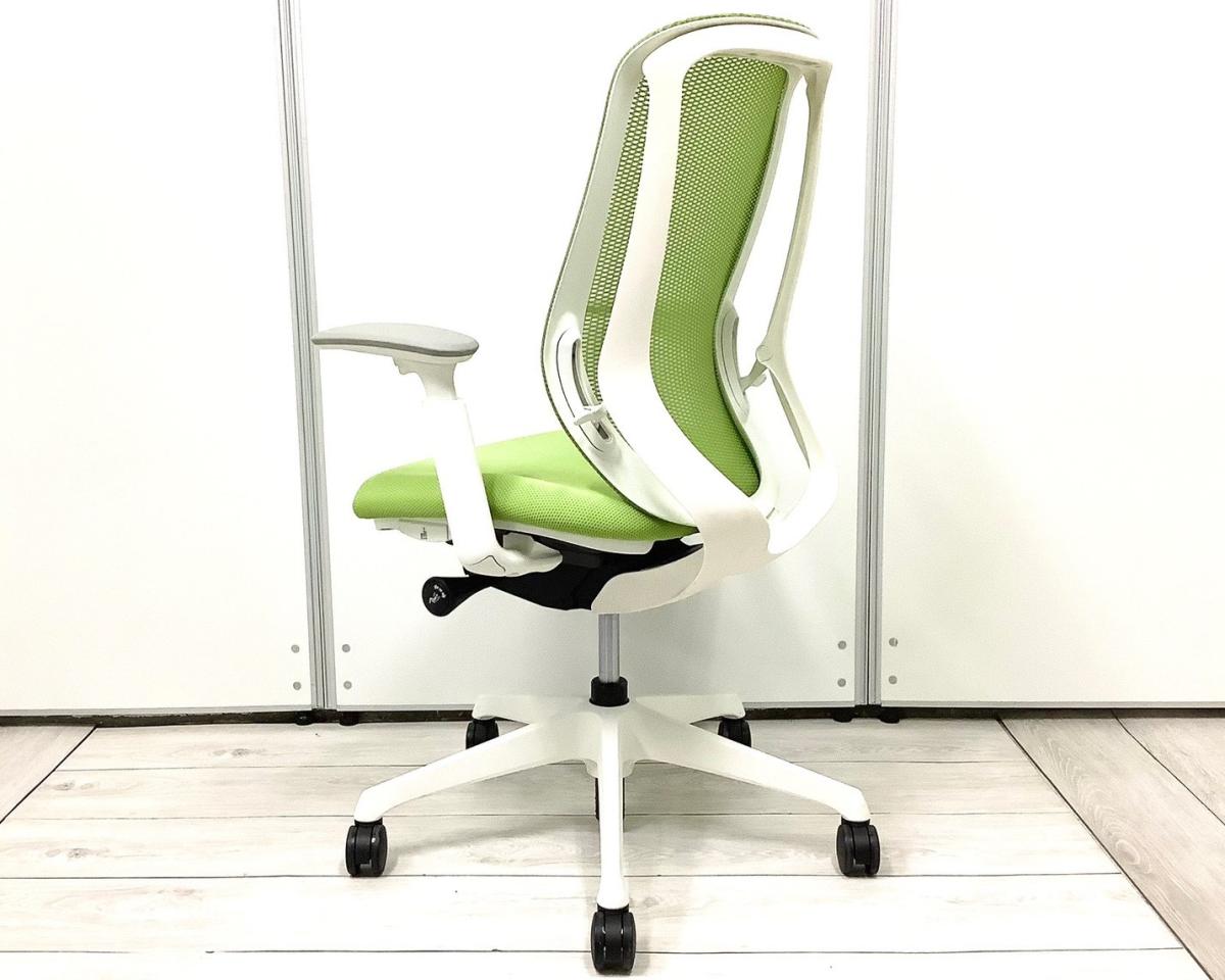 【前傾チルト機能付き!オカムラ製品で最も人気を集める高機能メッシュチェア!】■オカムラ(okamura)製 シルフィ(Sylphy)チェア ハイバック ■可動肘・ハンガー付き ■ライムグリーン × ホワイトシェル