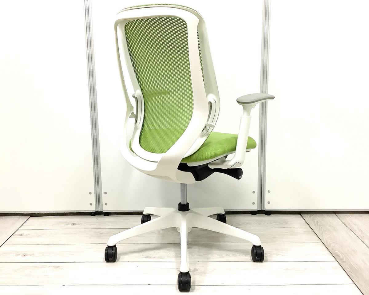 【前傾チルト機能付き】オカムラ製品で最も人気を集める高機能メッシュチェア!/オススメ(おすすめ) /人気商品【弊社使用欄:A01036032】■肘付き ハイバック 背面メッシュ ■可動肘 ■ライムグリーン×ホワイトシェル/オカムラ(okamura)製 シルフィ(Sylphy)