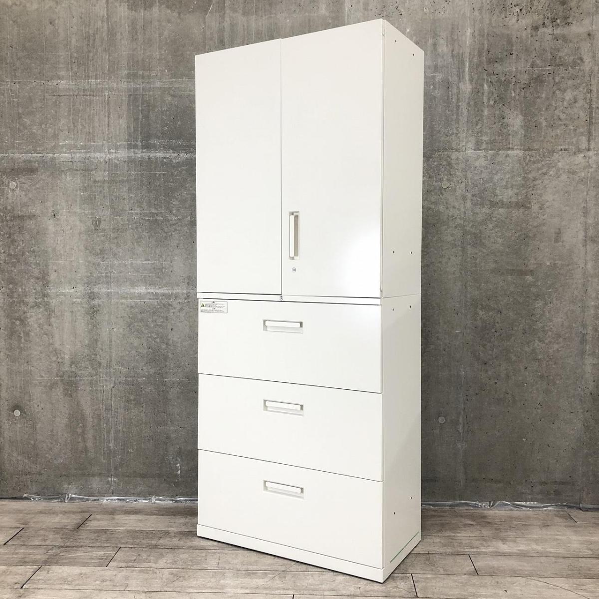 【大容量の上下書庫セット!オフィス書類を一気に整理!】■プラス(PLUS)製 レガーティオ(REGATEO)シリーズ 両開き戸+3段ラテラル 書庫セット H2150㎜ ■ホワイト ■シリンダー錠【弊社使用欄:A01043662/A01043660】【ID】- 渋谷サテライト
