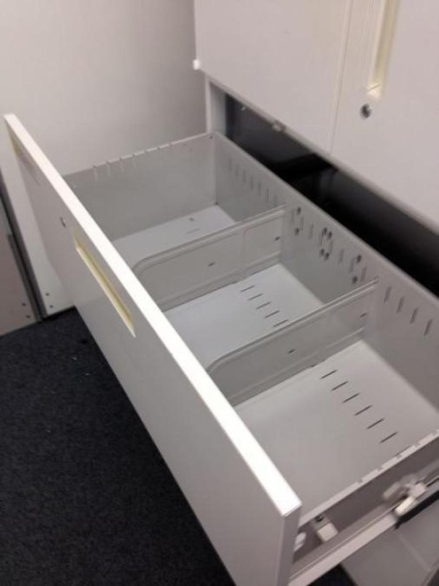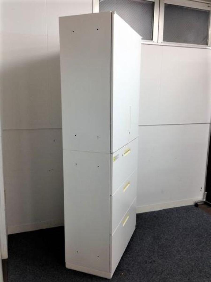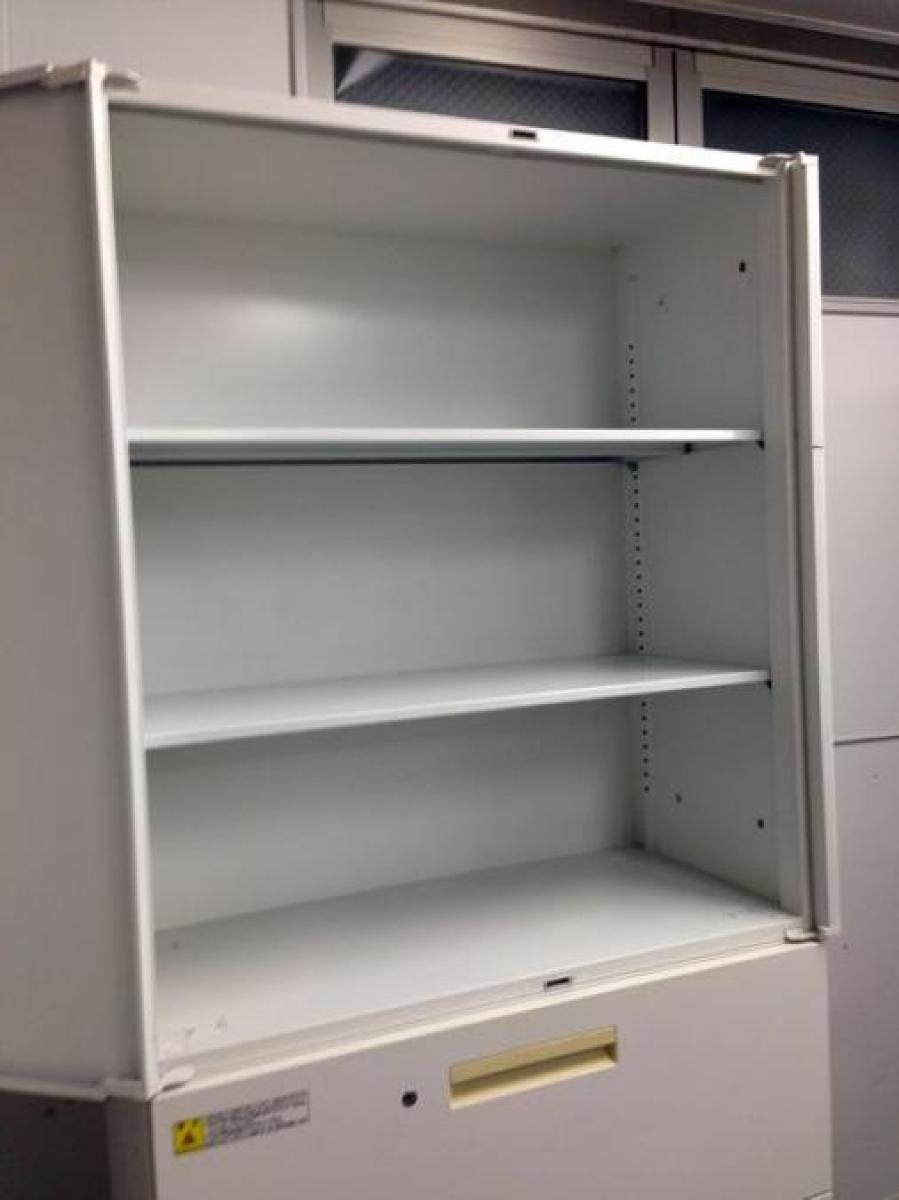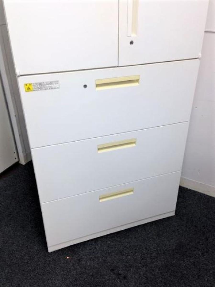 【在庫入替セール品!】定番シリーズ!収納量抜群!観音開き+引き出しタイプのキャビネットセット! ■内田洋行/HS/ホワイト ラテラル取っ手部分日焼け有- 立川・八王子店