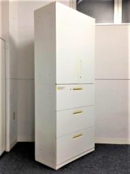 定番シリーズ!収納量抜群!観音開き+引き出しタイプのキャビネットセット! ■内田洋行/HS/ホワイト