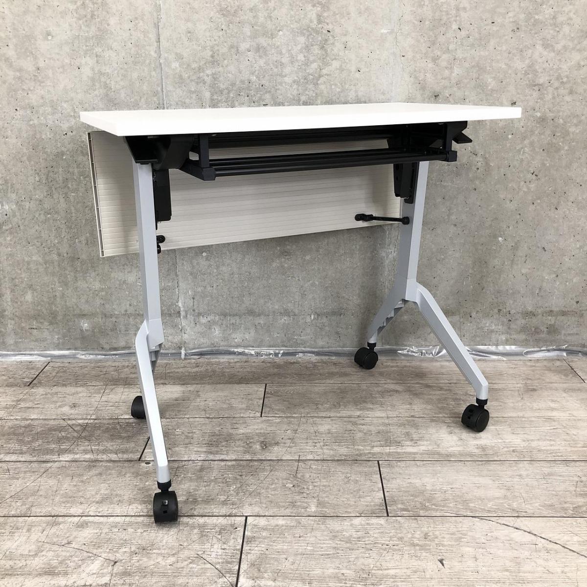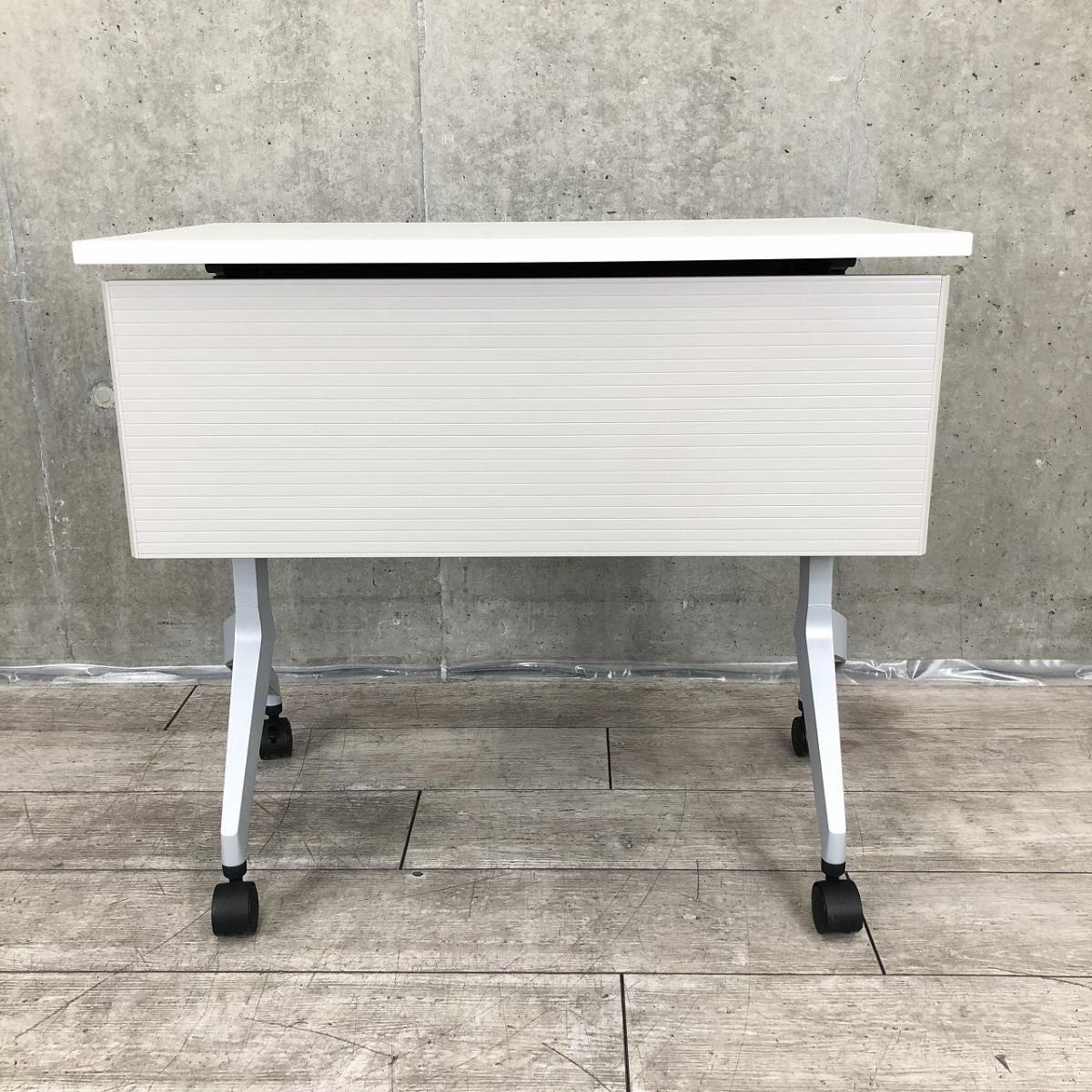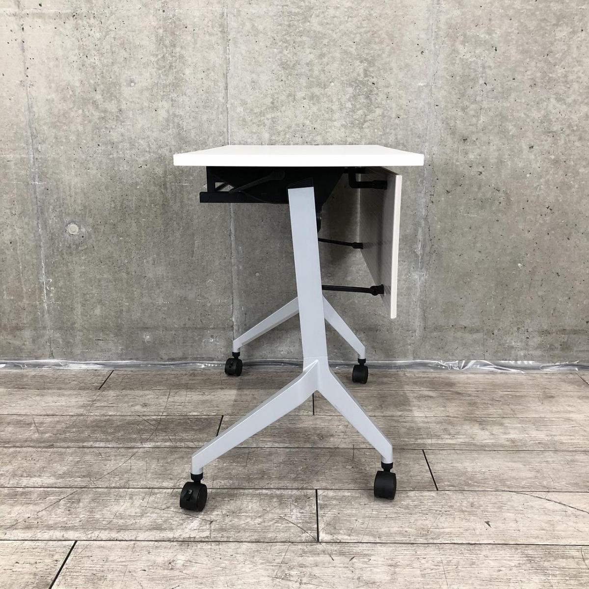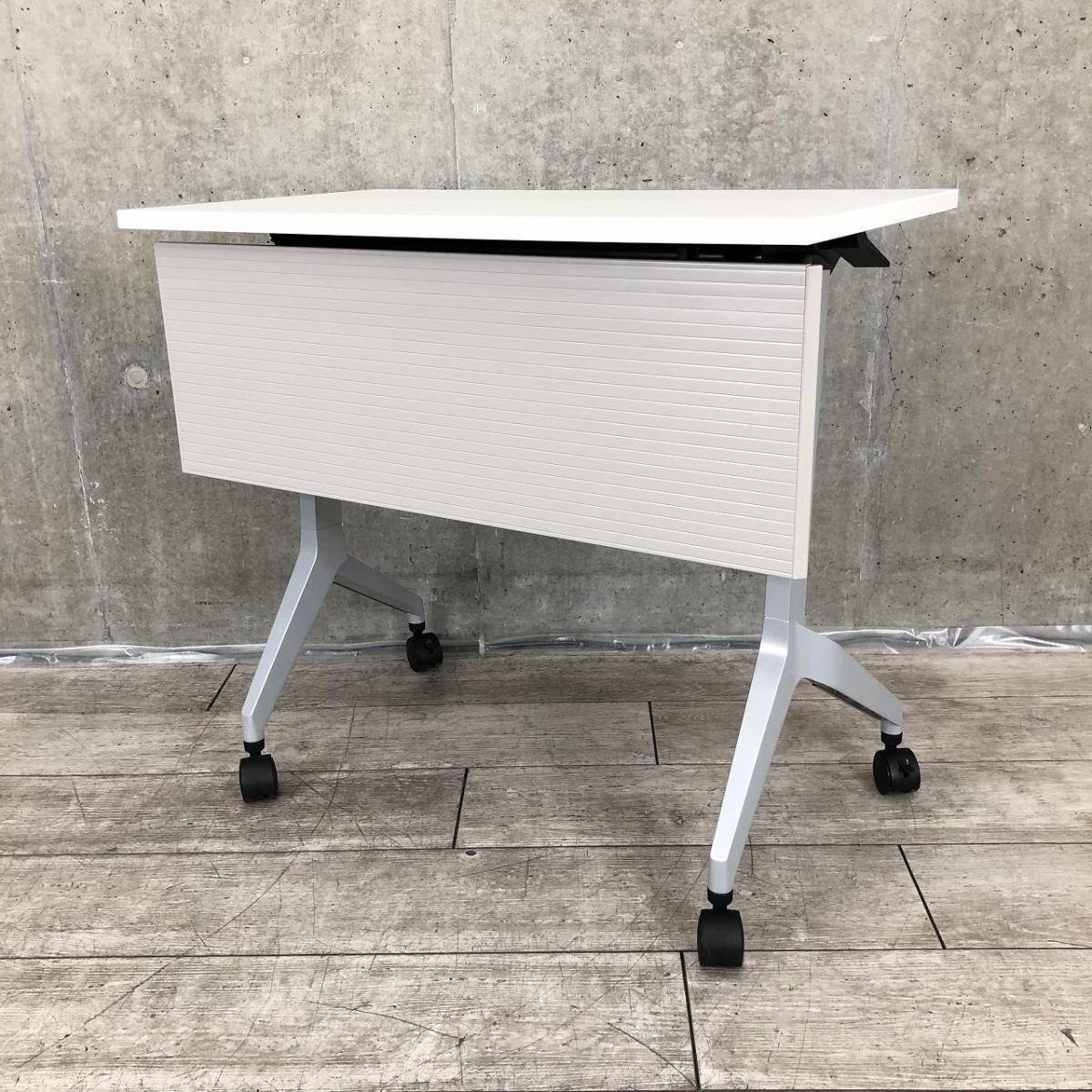 【定価約7万円】コンパクトな幅800㎜サイズのスタッキングテーブル! ■内田洋行/パラグラフ/ホワイト フラップテーブル 天板跳ね上げ 幕板付き