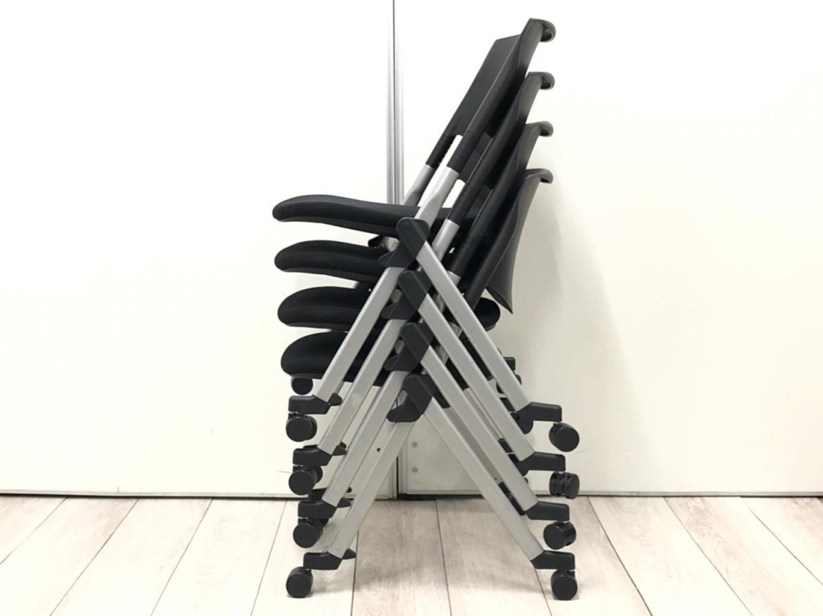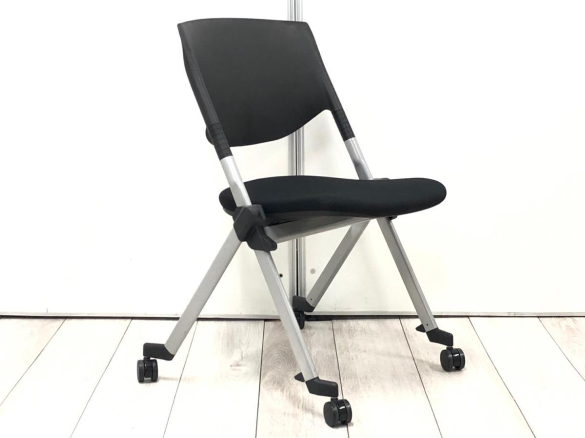 スタッキングチェアとネスティングチェア両方の使い方ができます!二刀流の簡易チェア! ■オカムラ/リータ(LITA)/ブラック 背面樹脂タイプ- 立川・八王子店