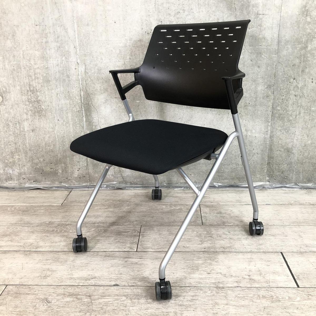 【関東倉庫在庫品】【使わない時は重ねて収納!肘付きで長時間の会議も安心の座り心地】■コクヨ製 ピエガ ミーティングチェア ■ブラック【弊社使用欄:A00997492】【ECBMC】- 在庫数