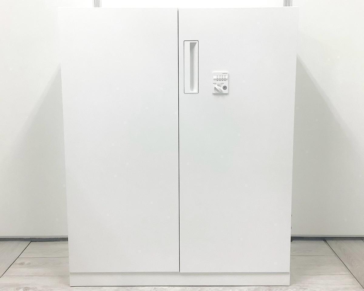 【収納物がひとめで分かる両開き戸!カギの持ち歩き不要なダイヤル錠タイプ!】■コクヨ(KOKUYO)製 エディア(EDIA)シリーズ 両開き書庫 ローキャビネット H1110㎜ ■ホワイト ■ダイヤル錠