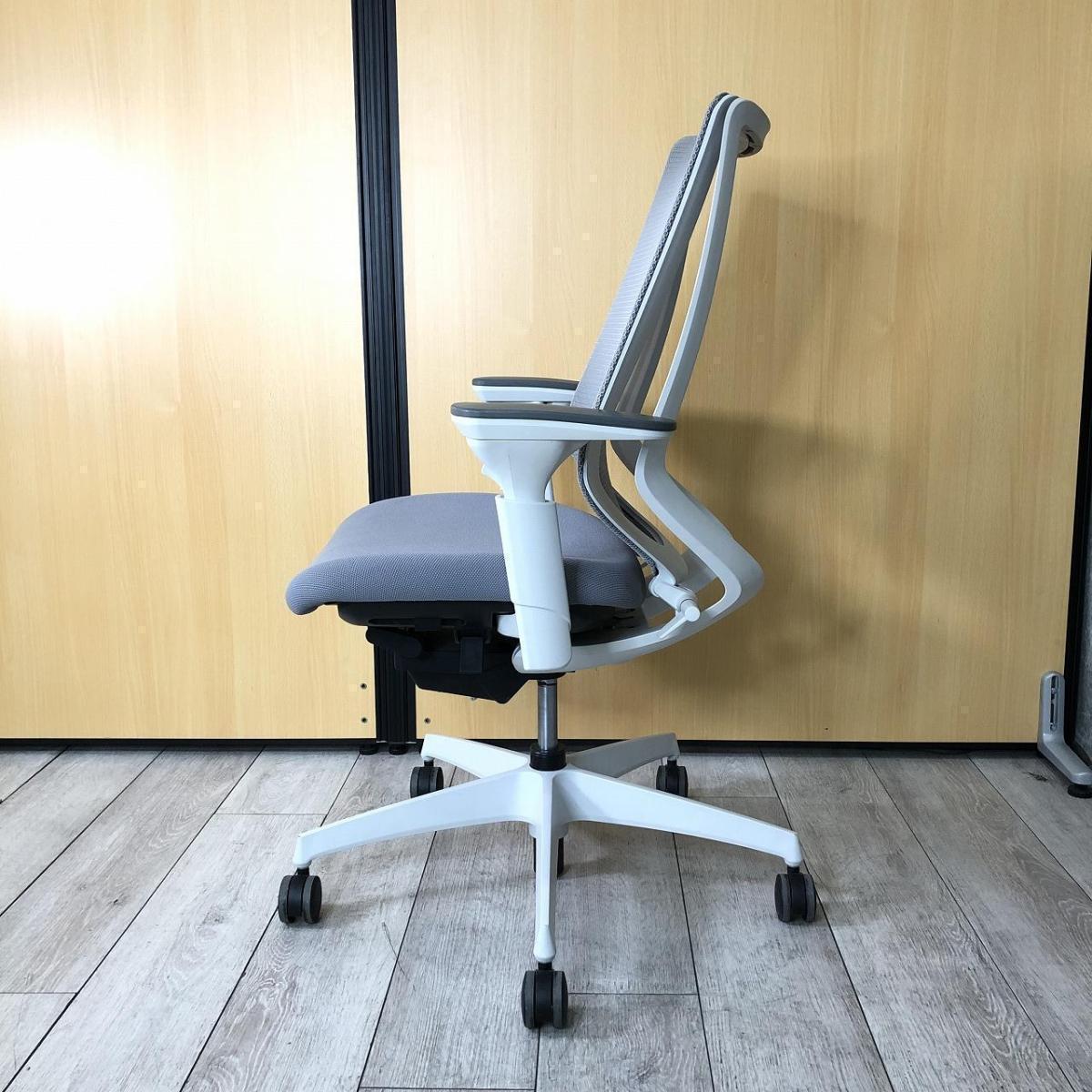 【二重フレーム構造がもたらすしなやかで美しい背もたれ機能!簡易操作で自分に合った姿勢をサポート!】■コクヨ(KOKUYO)製 デュオラ(Duora) 肘付き ハイバック 背面メッシュ ■可動肘 ■ソフトグレー×ホワイトシェル- 春日部・越谷店