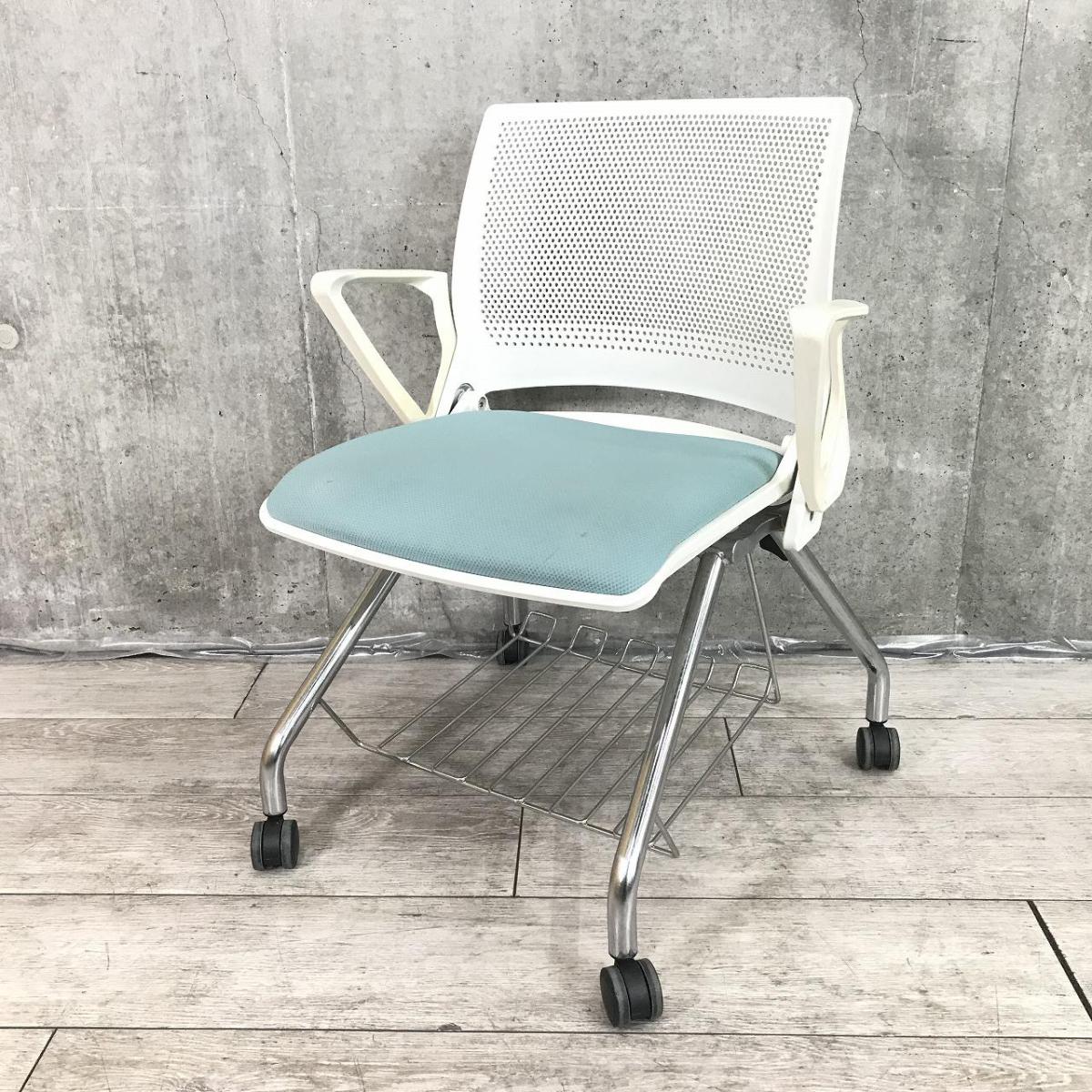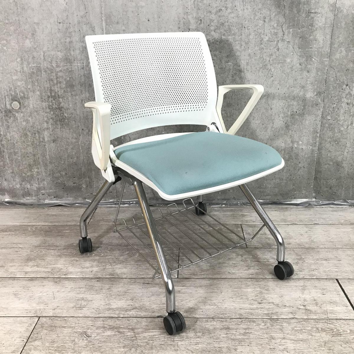 【関東倉庫在庫品】【座面を跳ね上げて重ねて収納可能!】■オカムラ製 クリール スタッキングチェア ■ライトブルー【弊社使用欄:A00999282】【ECBMC】在庫がある店舗一覧