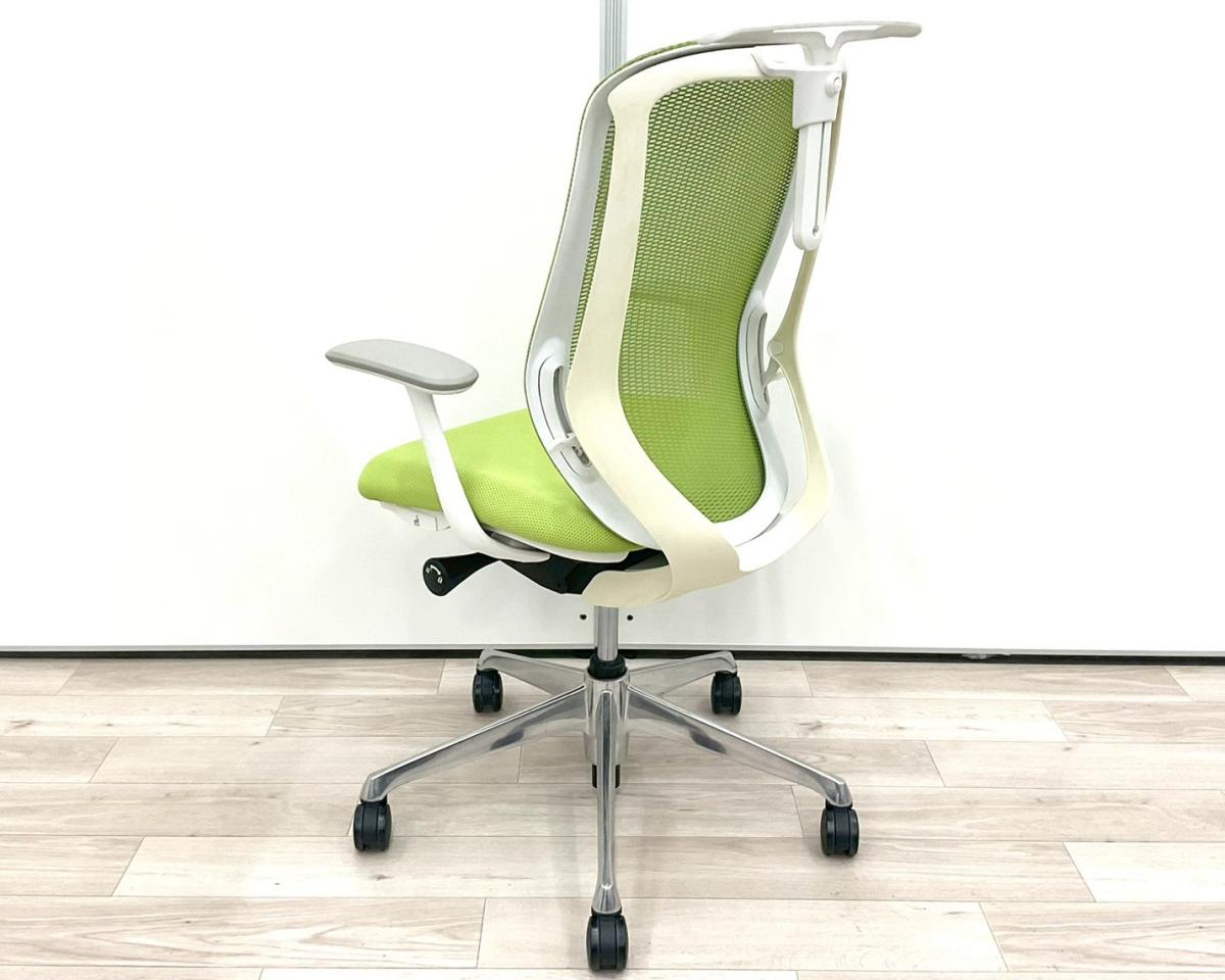 【前傾チルト機能付き!オカムラ製品で最も人気を集める高機能メッシュチェア!】■オカムラ(okamura)製 シルフィ(Sylphy)チェア ハイバック ■可動肘・ハンガー付き ■ライムグリーン × ホワイトシェル